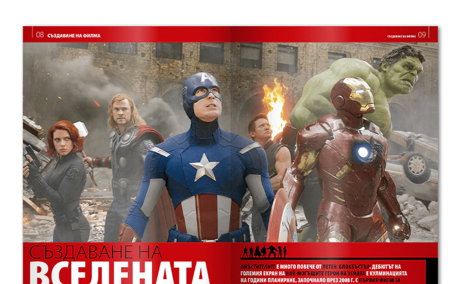 Открий тайните на създаването на филмите на Marvel чрез поредица от статии, обясняващи тяхното развитие в детайли: от дизайна до писането на сценария, но също и подбора на актьорския състав, правенето на филма, визуалните ефекти или използването на каскадьори.