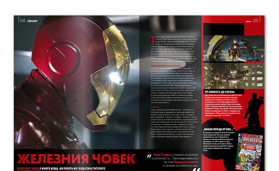 Всеки брой започва с профила на основния герой, анализирайки кой е той и откъде идва. Статията поставя фигурката в киновселената на Marvel.