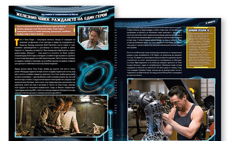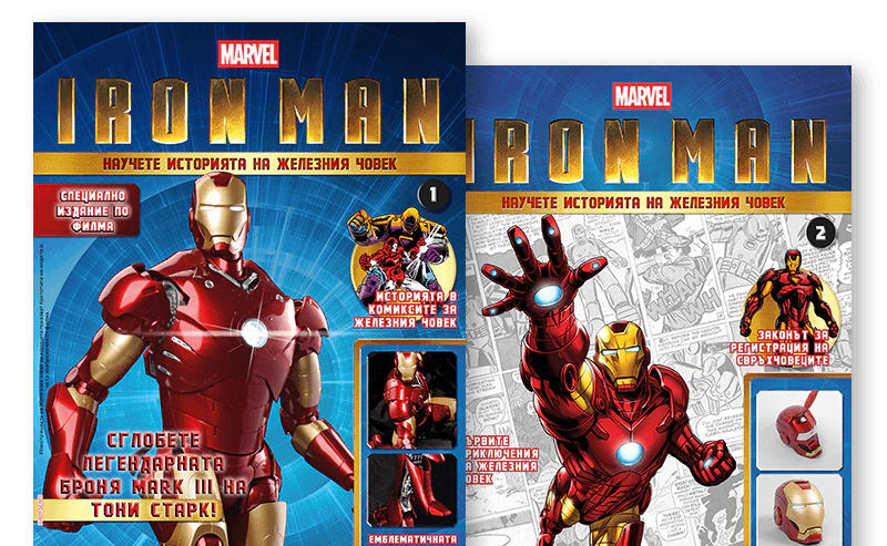 Впуснете се в завладяващо пътешествие с приключенията на Железния човек. Списанията включват информация за най-важните моменти от сагата за Отмъстителите и за появата на супергероя на големи събития и в кросоувъри. Тони Старк няма да скрие нищо от вас!