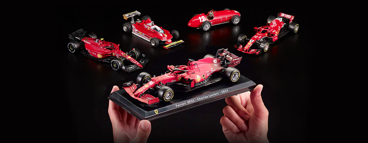 Fernando Alonso, Michael Schumacher, Alain Prost, Charles Leclerc, Kimi Räikkönen, Gilles Villeneuve, Niki Lauda... Seznam legendárních jezdců, kteří v průběhu let usedli za volant Ferrari, je impozantní. Nyní si tuto vzrušující historii můžete vychutnat doma - sbírejte, obdivujte a vystavte kolekci velkolepých červených vozů Ferrari.