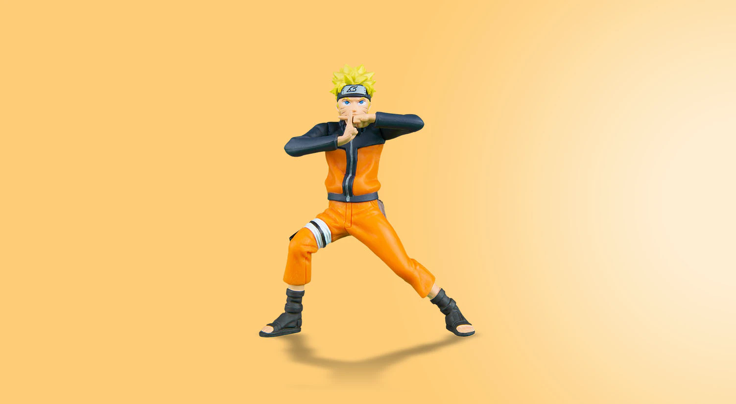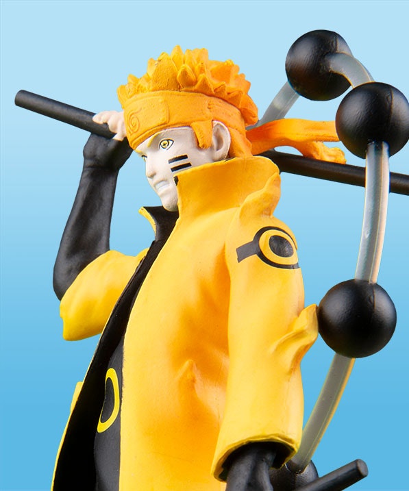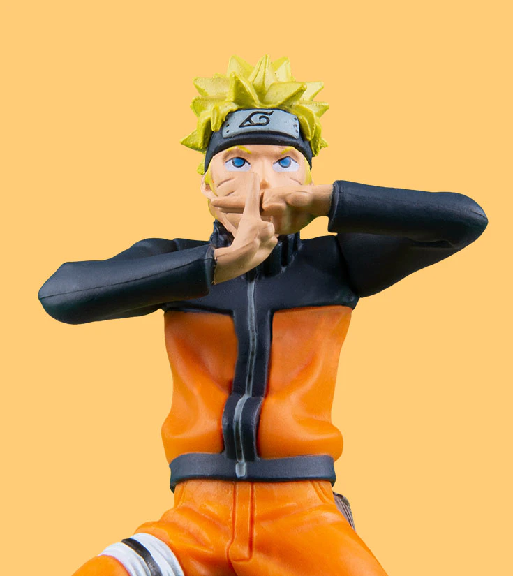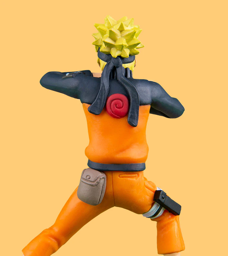 Mladý nindža je oblečen do své typické oranžové a černé barvy a hrdě nosí čelenku nindži ze své skryté vesnice. K provádění svých nejmocnějších technik používá pohyby rukou. Na figurce snadno poznáte, který chvat se chystá provést: svou charakteristickou techniku mnohočetných stínových klonů!