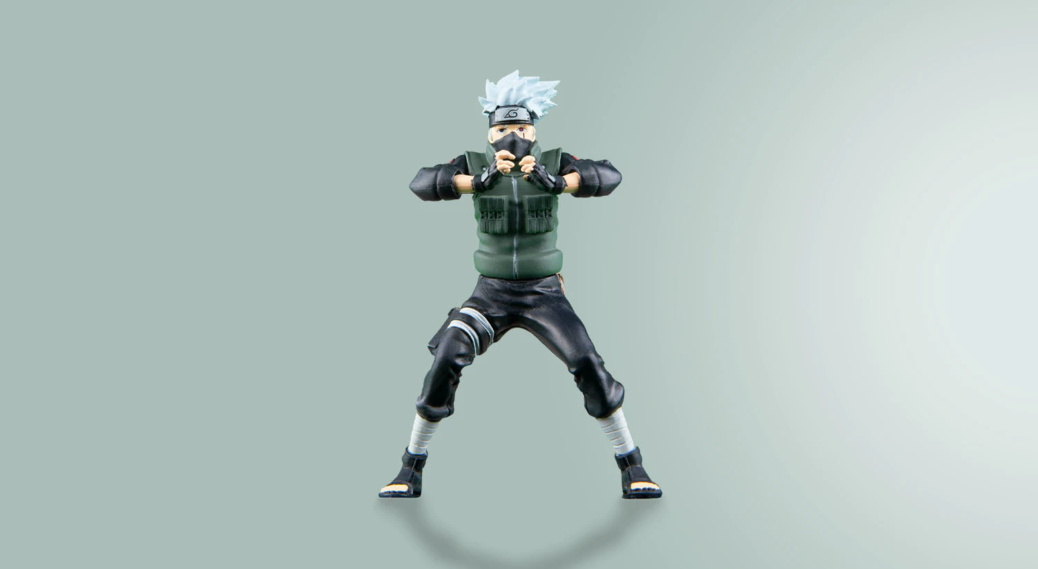 Při reprodukci postavy Kakašiho Hatakeho jsme zvolili pózu, kterou zaujímá, když začíná provádět svou nejznámější techniku „Bleskové ostří“. Při tomto chvatu Kakaši soustředí veškerou svou čakru mezi rukama, dokud se nevytvoří energetická koule s velmi silným elektrickým výbojem, kterou vypustí na nepřítele.