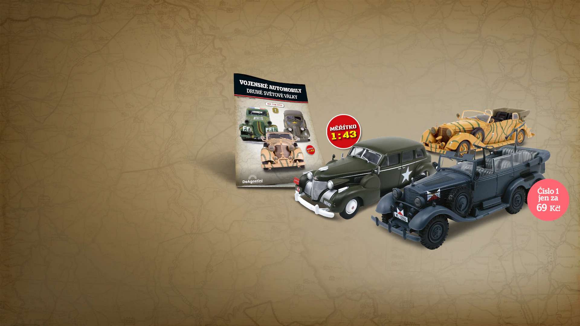 Představujeme jedinečnou sbírku modelů v měřítku 1 : 43, které věrně kopírují původní vozidla, jež se účastnila bojů ve druhé světové válce. Prozkoumejte technické specifikace vozidel a dozvíte se více o vývoji automobilismu a o roli, kterou vozy sehrály v historických událostech. Staňte se odborníkem na automobily a lehké terénní vozy z druhé světové války, poznejte tehdejší společnost a významné osobnosti, které změnily běh dějin.