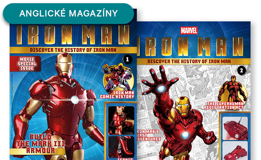Odhalte vše o jednom z nejznámějších hrdinů světa Marvel v jedinečné kolekci. Ponořte se do jednotlivých čísel časopisu a prožijte znovu všechna Iron Manova dobrodružství od jeho začátku až po současnost a sestavte si legendární oblek Iron Mana. Tento model s názvem Mark III ve velkém měřítku je nevídaně propracovaný, dokonale ohebný, a je navíc vybaven funkčními LED světly. Vychází v limitované edici, kterou si žádný fanoušek světa Marvel nemůže nechat ujít.