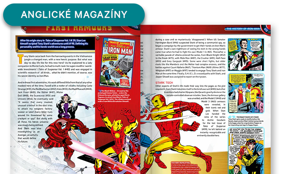 Ponořte se do nejslavnějších Iron Manových příběhů od 60. let po současnost, které superhrdina prožil během své neuvěřitelné dráhy. Objevte tajné příběhy světa Marvel očima jednoho z jeho hlavních hrdinů. V časopise najdete také speciální sekci věnovanou Iron Manovi ve filmové tvorbě.