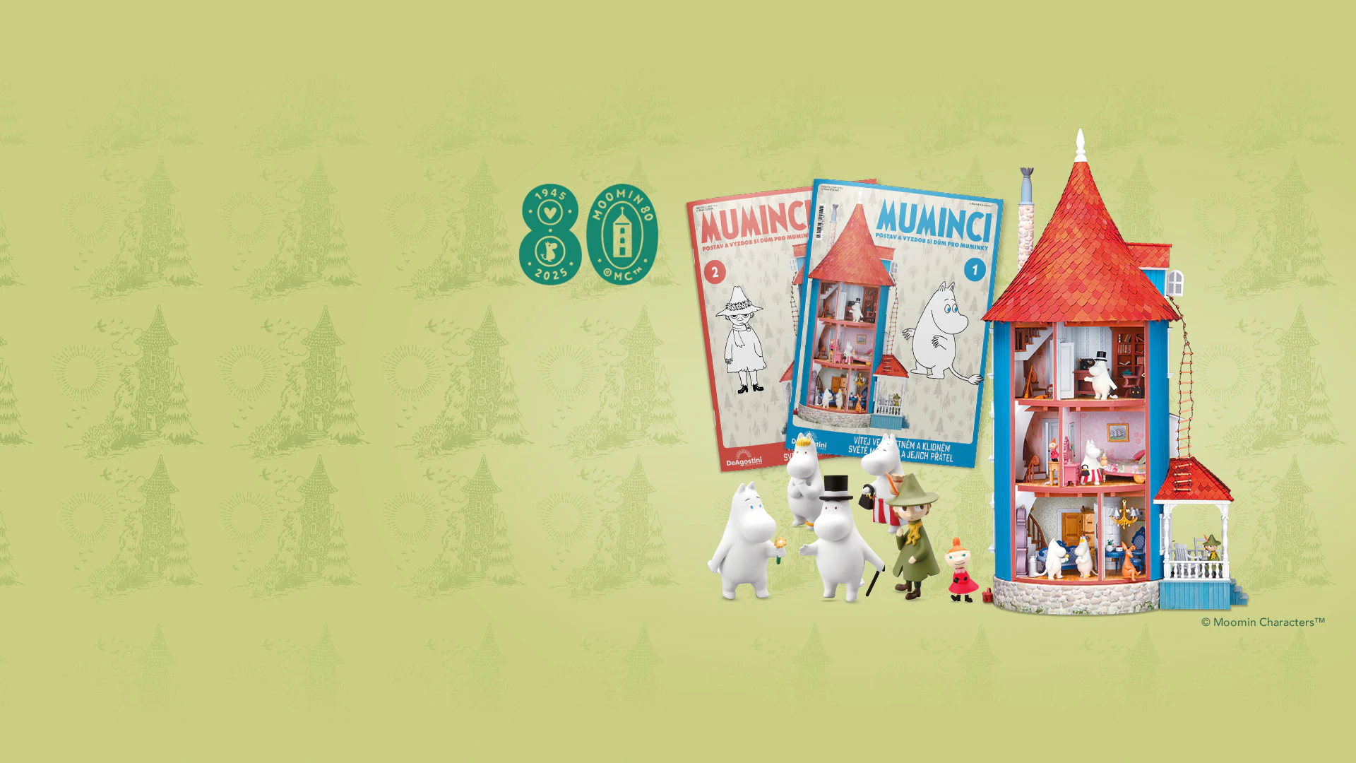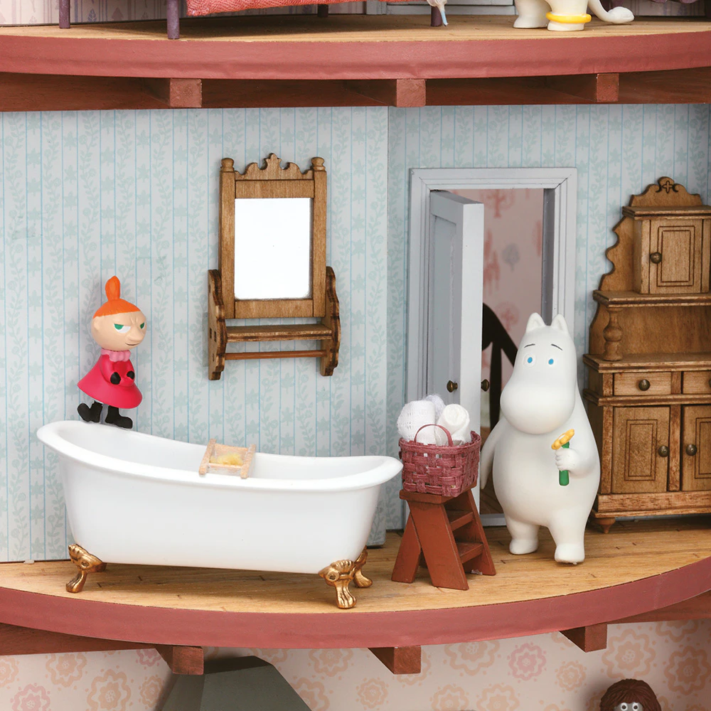 Sestavte si dům muminků z dílků, které najdete v jednotlivých číslech kolekce. Kromě toho můžete sesbírat osm okouzlujících figurek postav z knížek Tove Janssonové také nábytek, doplňky a dílky potřebné k sestavení domečku. Vrcholem celé sbírky bude muminkova koupelna!