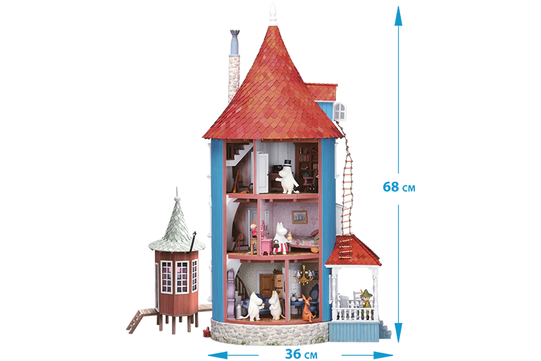 V domě muminků je příjemně a útulně. Srdečně zván je naprosto každý! Dům muminků v podobě skládacího modelu je promyšlený do nejmenších detailů. Pochází přímo z kouzelného světa, který oživila malířka a spisovatelka Tove Janssonová.