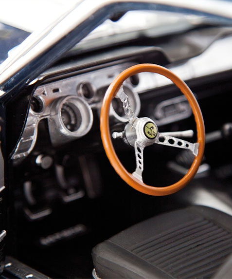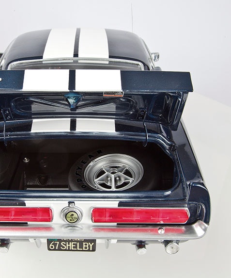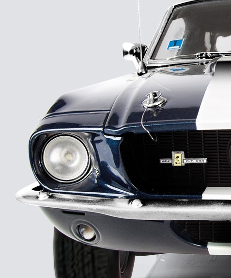 Interiér i exteriér jsou věrné originálnímu vozu. Model přesně reprodukuje každý detail klasického svalovce Shelby GT-500™ 1967 a jeho výkonného motoru typu 428. Všechny kovové a plastové díly se dodávají nabarvené nebo pokovované, připravené k rychlému a snadnému sestavení. Není nutná žádná další povrchová úprava.