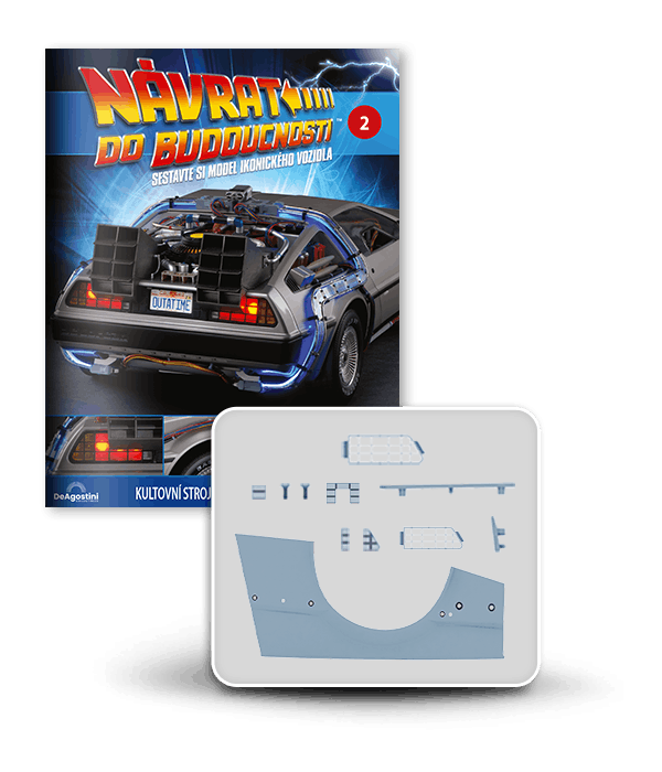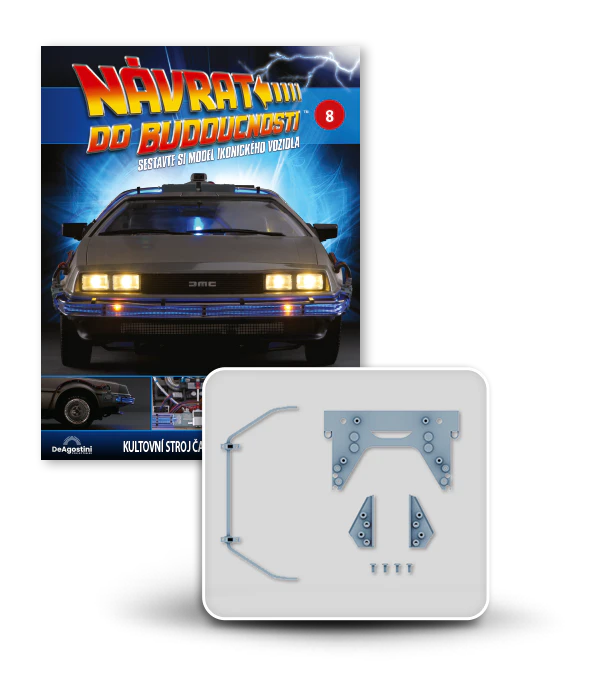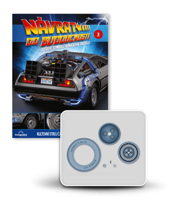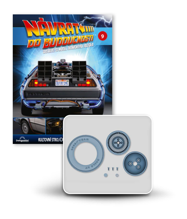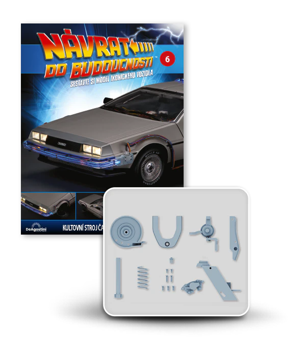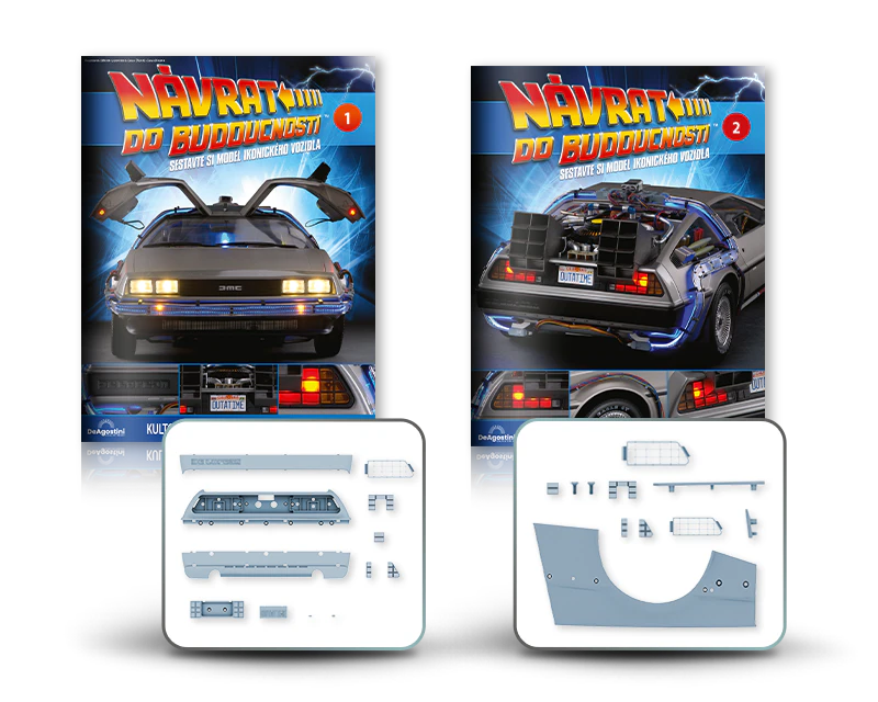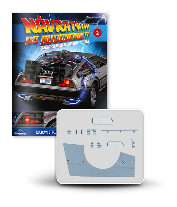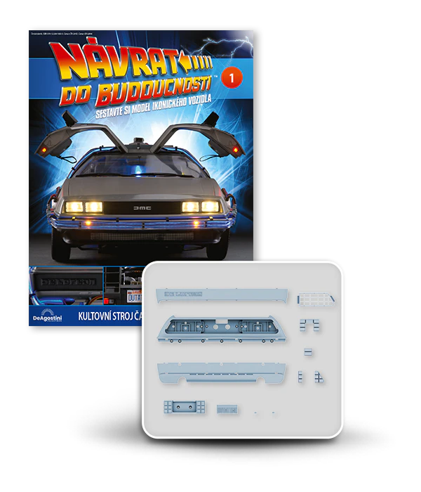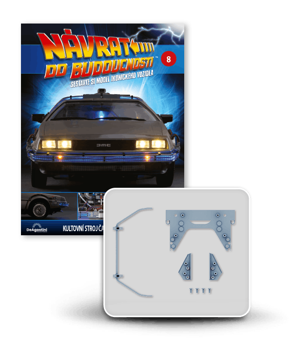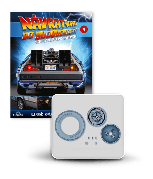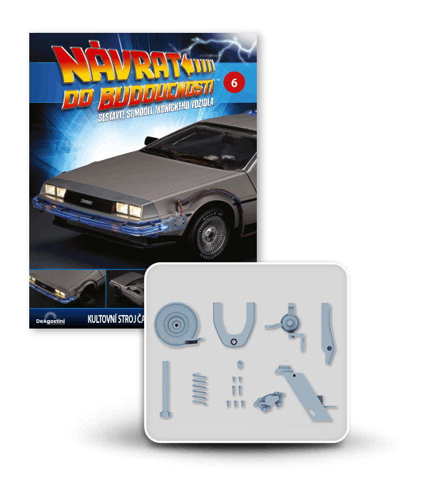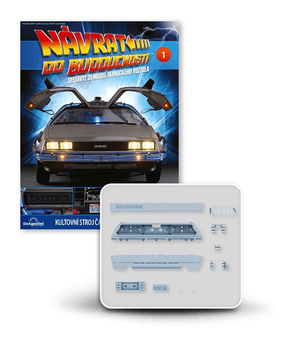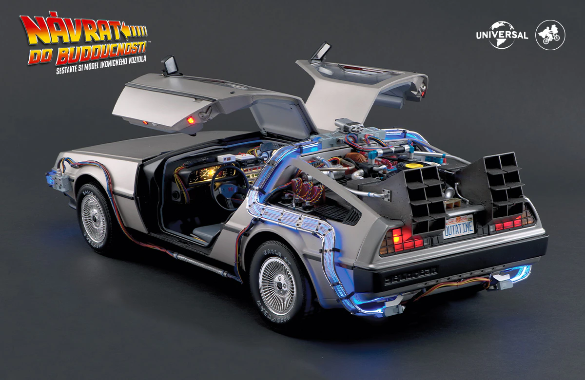 Zajezděte si s doktorem a Martym a postavte si jedno z nejslavnějších aut filmové historie. Tento model auta z filmu Návrat do budoucnosti v měřítku 1 : 8 je plný úžasných detailů, včetně kabelů, interiéru, časových obvodů – dokonce i kapacitátoru. S jeho návrhem pomohl Joe Walser, světový odborník na filmový Stroj času.