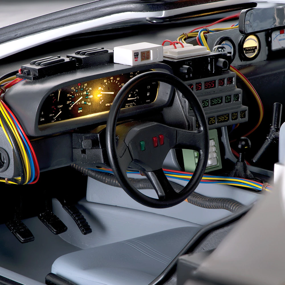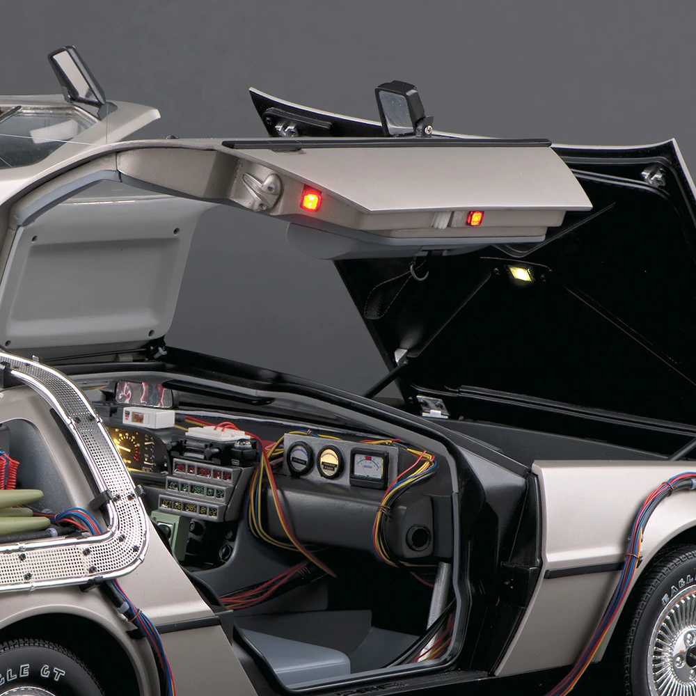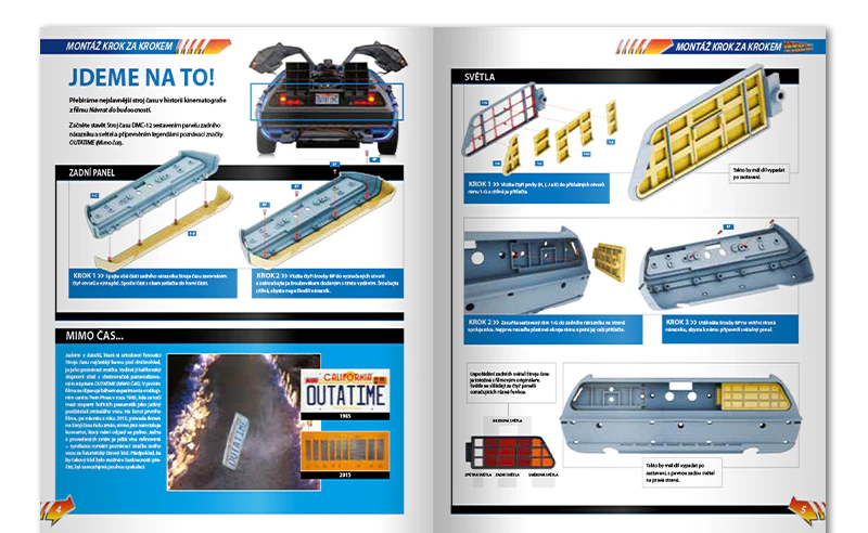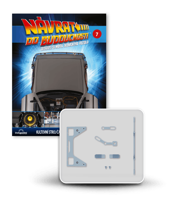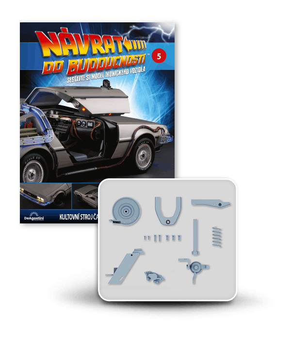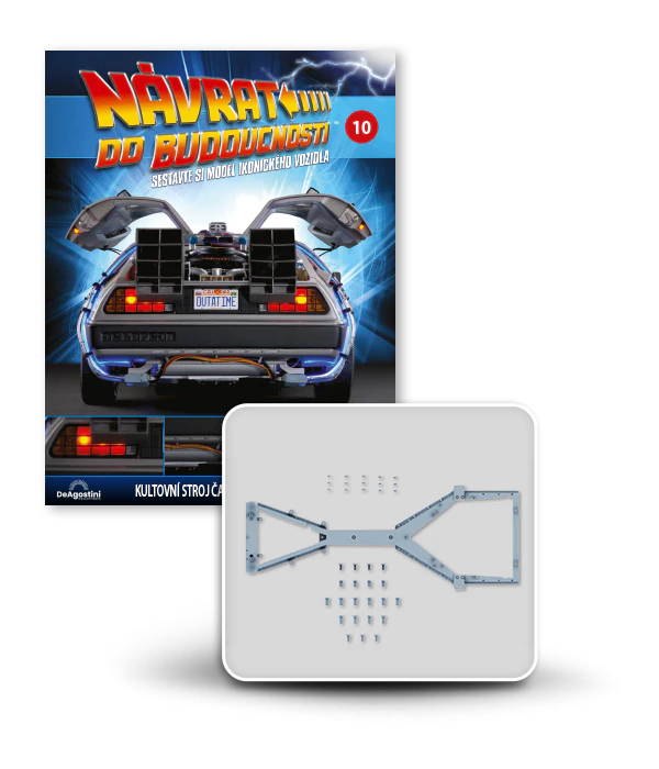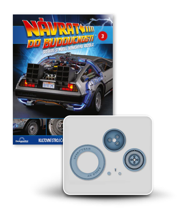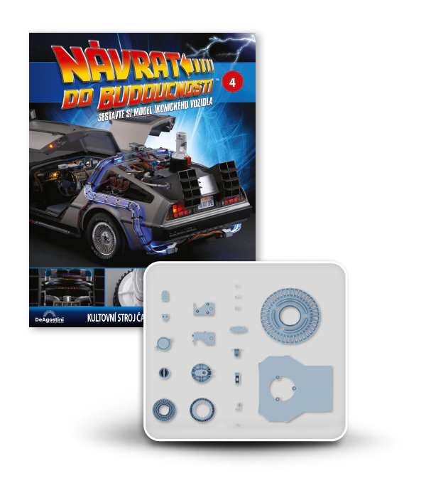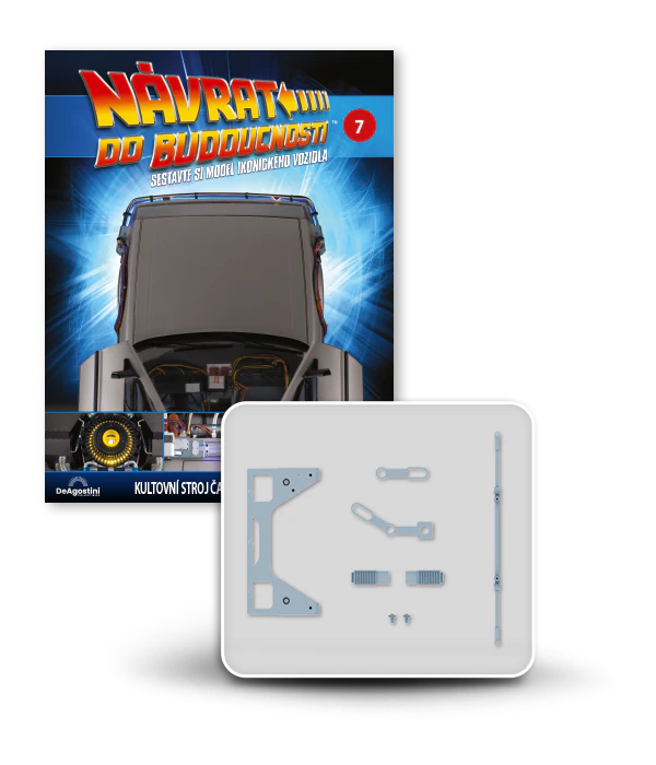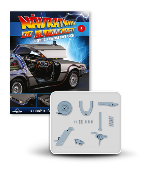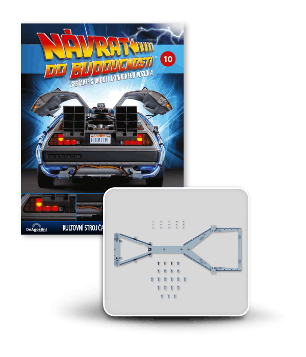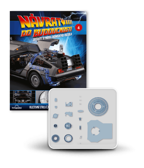 Zajezděte si s doktorem a Martym a postavte si jedno z nejslavnějších aut filmové historie. Tento model auta z filmu Návrat do budoucnosti v měřítku 1 : 8 je plný úžasných detailů, včetně kabelů, interiéru, časových obvodů – dokonce i kapacitátoru. S jeho návrhem pomohl Joe Walser, světový odborník na filmový Stroj času.