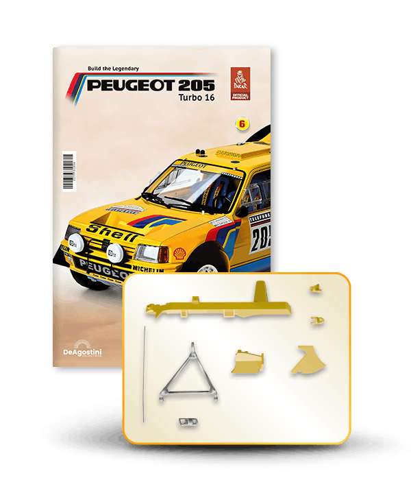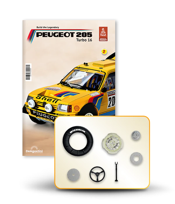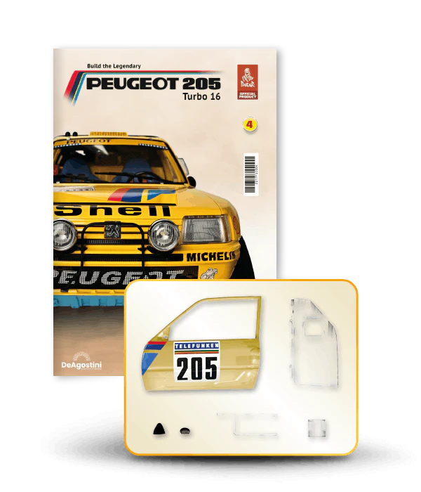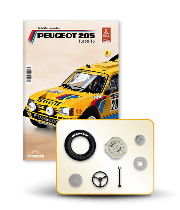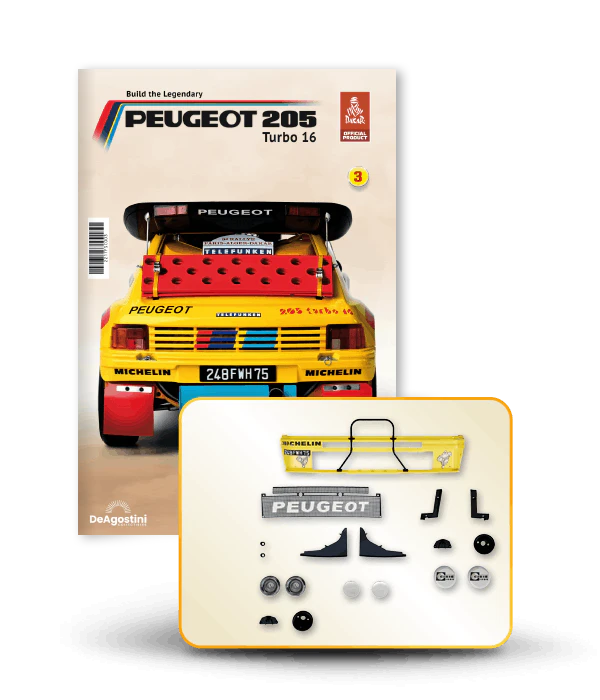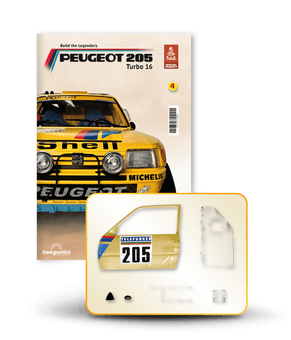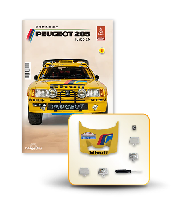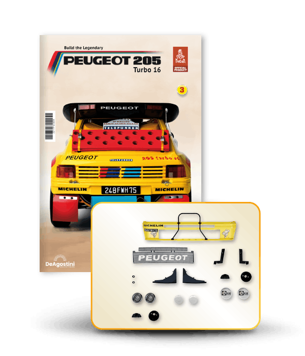 Nyní si můžete v měřítku 1:8 postavit vlastní model velkolepého vozu Peugeot 205 Turbo 16 Grand Raid, vítěze Rallye Paříž-Dakar 1987, který řídili Ari Vatanen a Bernard Giroux. Tento dosud nikdy nevydaný model je prestižním přírůstkem do světa modelářství. Bavte se při jeho sestavování a hrdě si ho doma vystavte na čestném místě.