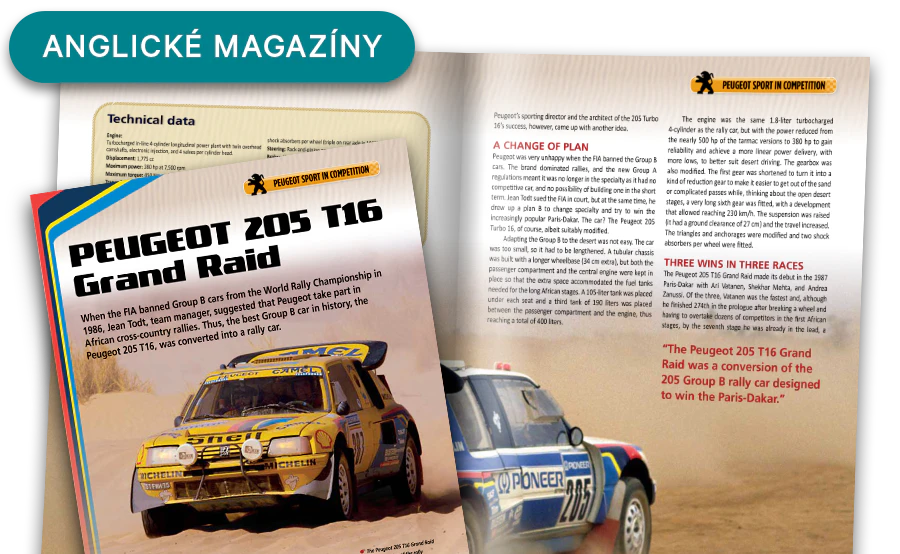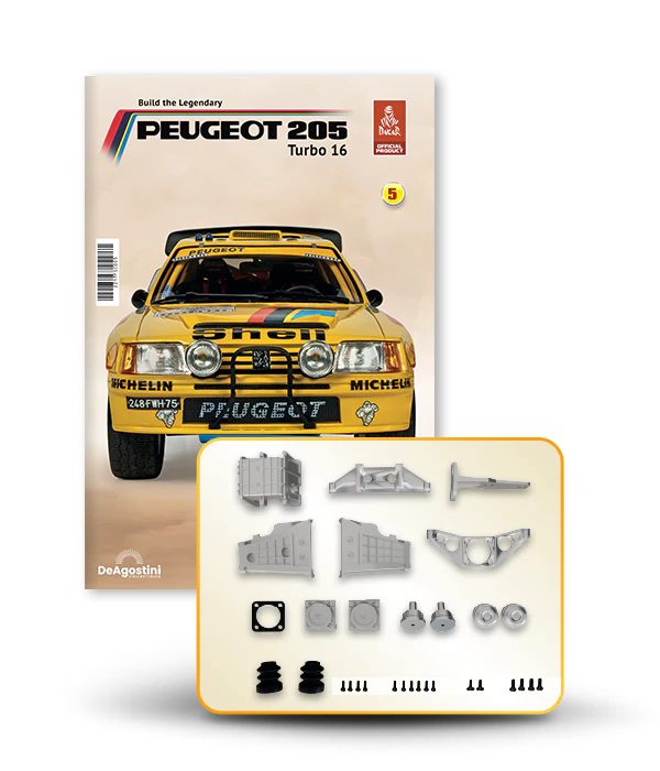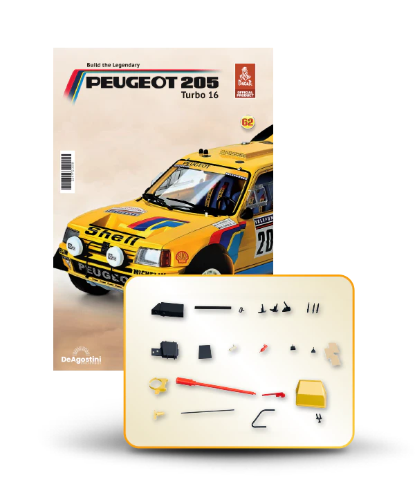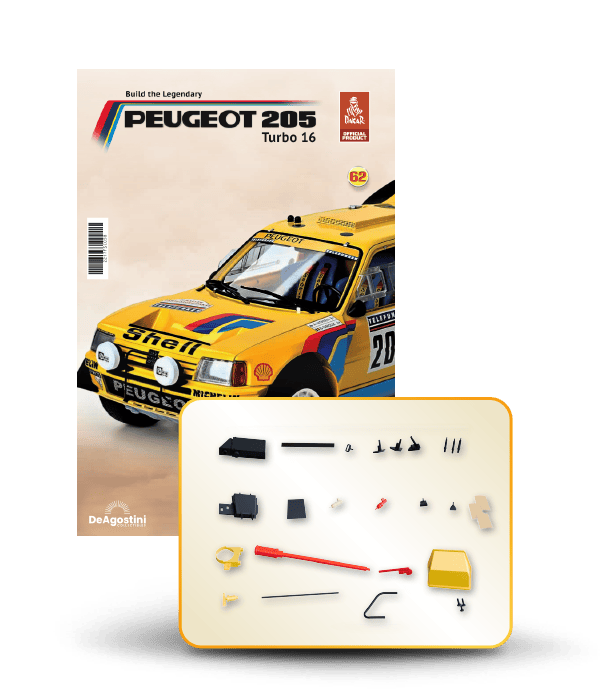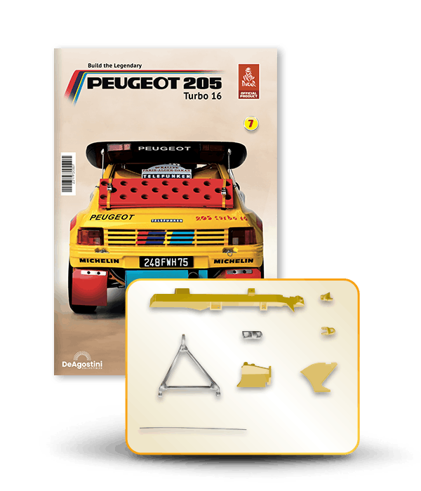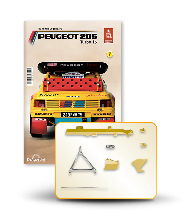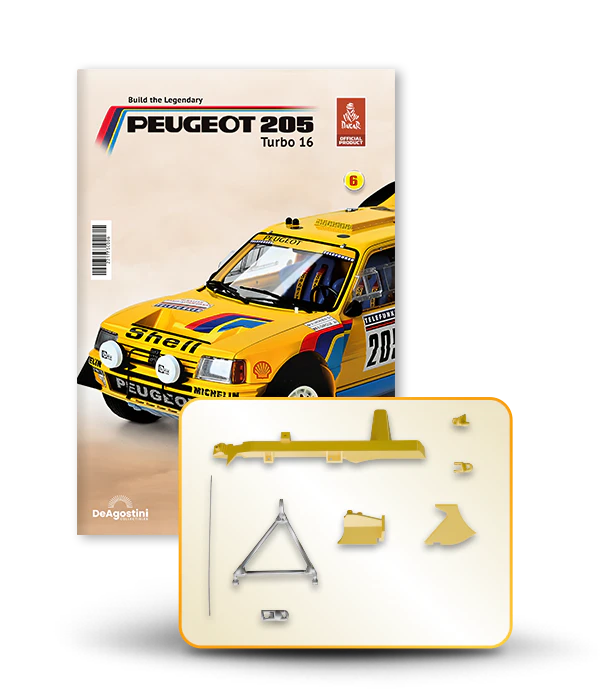 Nyní si můžete v měřítku 1:8 postavit vlastní model velkolepého vozu Peugeot 205 Turbo 16 Grand Raid, vítěze Rallye Paříž-Dakar 1987, který řídili Ari Vatanen a Bernard Giroux. Tento dosud nikdy nevydaný model je prestižním přírůstkem do světa modelářství. Bavte se při jeho sestavování a hrdě si ho doma vystavte na čestném místě.