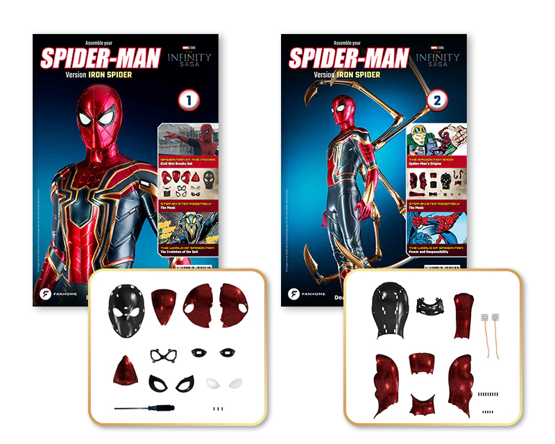 Tato neuvěřitelně detailní velkoformátová reprodukce brnění Iron Spider je nabízena v limitované edici, kterou si fanoušci Marvelu nemohou nechat ujít. Součástí kolekce je navíc bohatě ilustrovaný časopis, který představuje svět Spider-Mana.