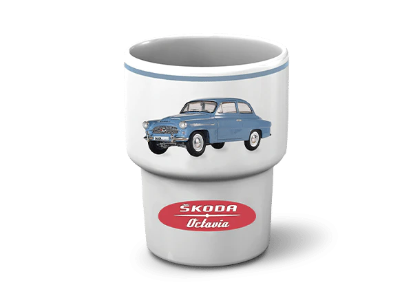 Porcelánový hrnek v retro stylu s vyobrazením legendárního modelu Škoda.