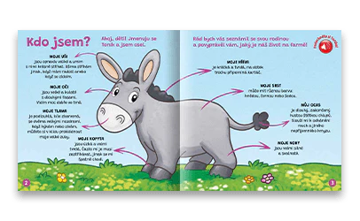 Z krásných barevných obrázků se naučíte poznávat zvířátka podle toho, jak vypadají, jaké mají charakteristické vlastnosti i jaké zvuky vydávají.