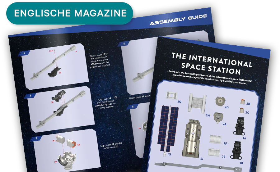 Mit jeder Ausgabe erhalten Sie Teile, die es Ihnen ermöglichen, ein Modell der ISS im Maßstab 1:120 zu bauen. Ein prachtvolles Modell mit hochwertiger Oberfläche, das sich dank der klaren Erklärungen und Schritt-für-Schritt-Illustrationen einfach montieren lässt und Sie durch jede Phase führt.