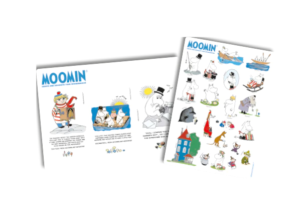 Aufkleber mit den Mumins und ihren Freunden und natürlich dem Muminhaus.