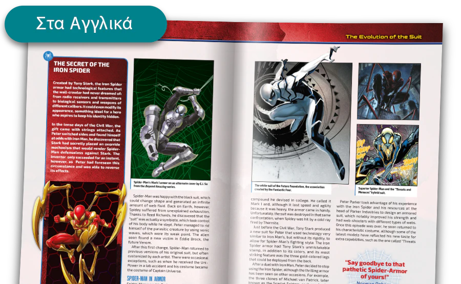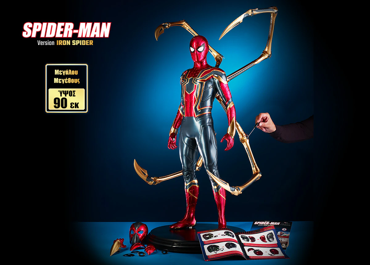 Η πιστή ρέπλικα της πανοπλίας Iron Spider μεγάλου μεγέθους και με απίστευτες λεπτομέρειες κυκλοφορεί για πρώτη φορά σε ειδική έκδοση για τους λάτρεις της Marvel που δεν πρέπει να τη χάσουν. Η συλλογή συνοδεύεται από μια πλούσια σειρά εικονογραφημένων περιοδικών αφιερωμένων στον κόσμο του Spider-Man.