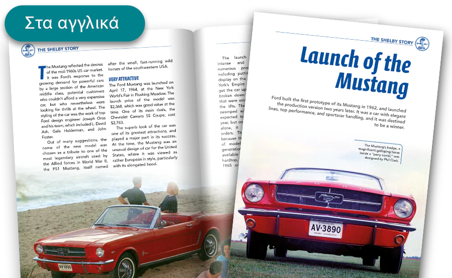 Ονειρευτήκατε ποτέ να αποκτήσετε μια Ford Mustang Shelby GT500®; Γιατί τώρα μπορείτε. Πάνω από πενήντα χρόνια μετά τη δημιουργία της, μπορείτε να απολαύσετε μια πιστή ρέπλικα σε κλίμακα 1:6 ενός θρυλικού αυτοκινήτου από μια εμβληματική εποχή της αυτοκινητοβιομηχανίας. Μια μοναδική ευκαιρία να κατασκευάσετε βήμα προς βήμα τη δική σας Ford Mustang Shelby GT500® του 1967 - ένα αυτοκίνητο σύμβολο για τους λάτρεις της ταχύτητας και της μηχανικής.