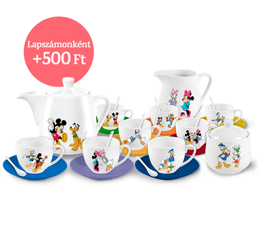 Egy kihagyhatatlan, fehér porcelánból készült gyűjtemény a legikonikusabb Disney-figurákkal: Mickey egér, Donald kacsa, Minnie egér, Daisy kacsa, Plútó, Goofy kutya, Tiki, Niki és Viki