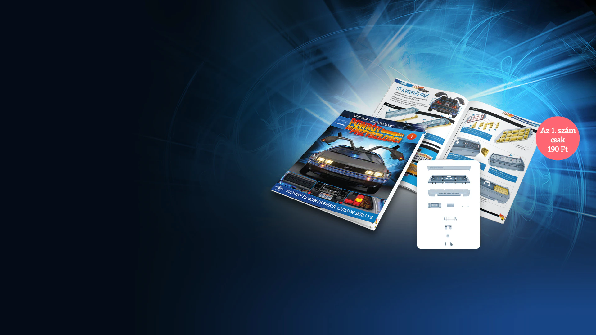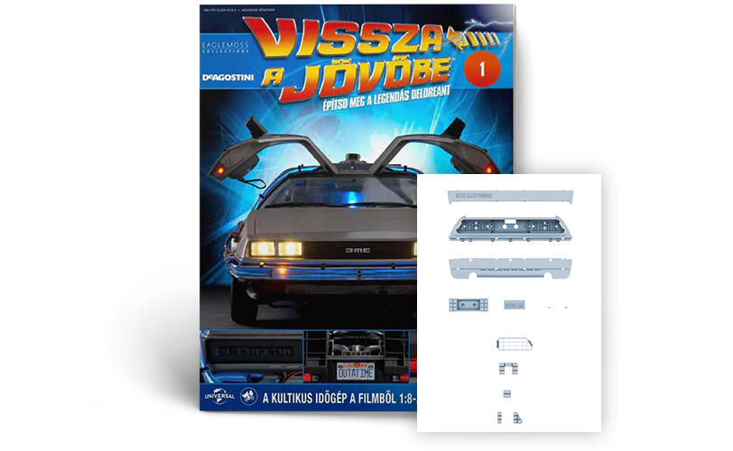 Mindegyik számmal újabb alkatrészeket kapsz a Vissza a jövőbe c. film felejthetetlen DeLoreanjének összeállításához. Minden szám tartalmaz egy gazdagon illusztrált, pontos instrukciókkal ellátott összeszerelési útmutatót, amellyel könnyedén összeállíthatod a kivételes szuperautó modelljét.