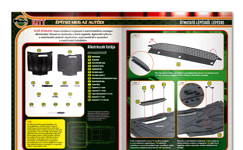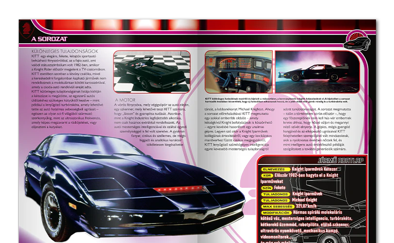 Építsd meg a K.I.T.T. modelljét, a televíziózás legmenőbb autójának hű másolatát! A magazin a szerelés minden egyes lépését könnyen érthető ábrák segítségével magyarázza el.