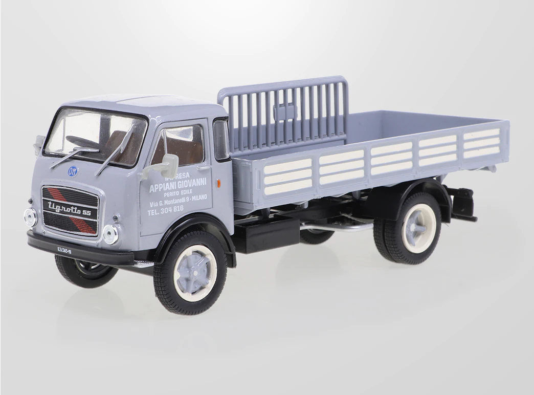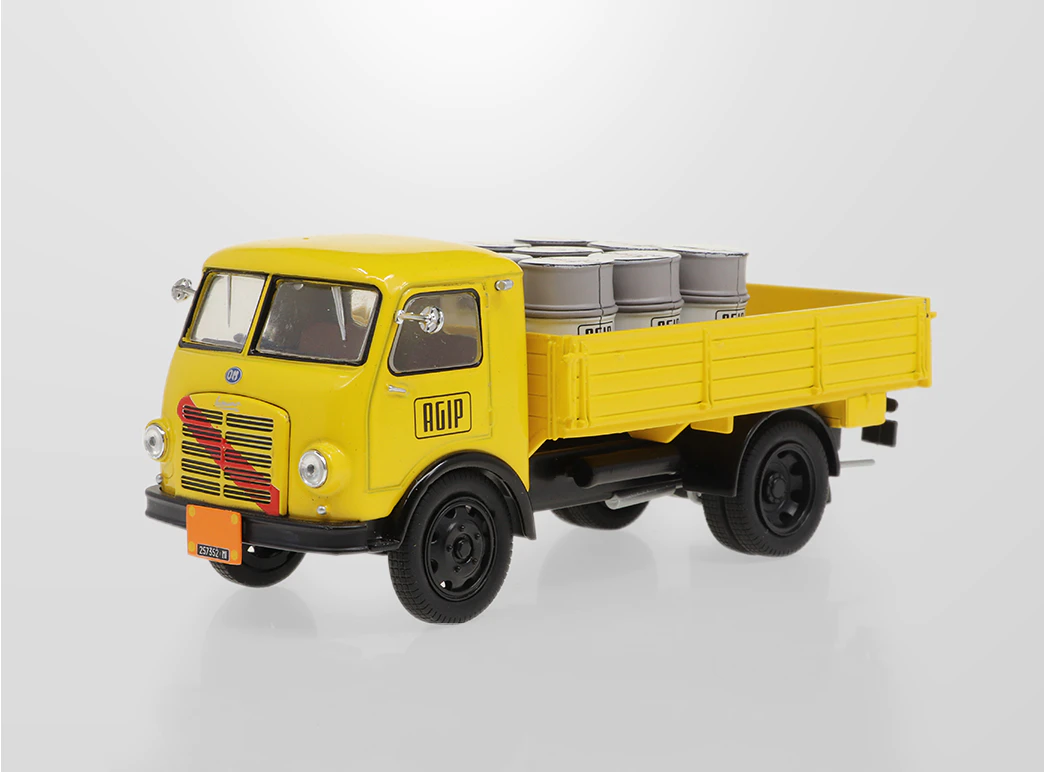 L’Italia della ricostruzione ha bisogno di qualsiasi tipo di veicolo, ma in alcuni settori come quello dei medioleggeri non può contare più di tanto sui residuati bellici. Ecco che i veicoli nuovi si diffondono più rapidamente qui che in altri segmenti di mercato. Il simbolo di questa generazione che ha consegnato porta a porta ogni tipo di merce è l’OM Leoncino, qui proposto con un cassone fi sso e l’iconica livrea dell’Agip.