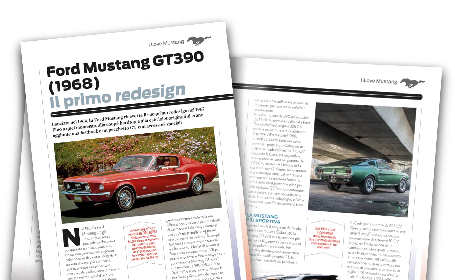 In un ampio articolo illustrato nel dettaglio, passiamo in rassegna lo sviluppo, le caratteristiche tecniche e la vita commerciale di ciascuno dei modelli che riceverai nel corso della collezione, con un'attenzione particolare ai dettagli che li hanno resi unici nell'appassionante storia della Mustang.