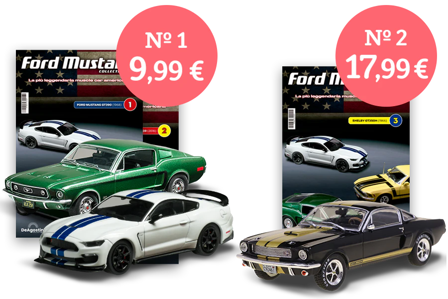 Nel primo invio ricevi il primo numero con due modelli Ford Mustang a soli 9,99€ e il secondo numero a 17,99€