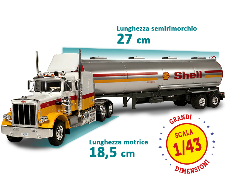 Ciascuna di queste miniature, realizzate in metallo e plastica iniettata e con decorazioni dettagliate, è una replica fedele del modello reale. Non lasciarti sfuggire l'occasione di collezionare i camion più impressionanti del mondo made in the USA… e non solo!
