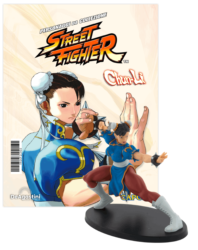 Colleziona i personaggi più carismatici del leggendario videogioco, dipinti a mano e rifiniti nei minimi dettagli! Agli eroi e agli antagonisti dei primi capitoli della serie di Capcom si aggiungono i nuovi volti degli ultimi videogiochi fino a Street Fighter V. Le riproduzioni di questa collezione rendono onore ai combattenti della saga, riproducendo le loro mosse caratteristiche! Scopri tante curiosità sui tuoi personaggi preferiti, la loro storia, le mosse preferite e tanto altro con i magazine ricchi di contenuti.