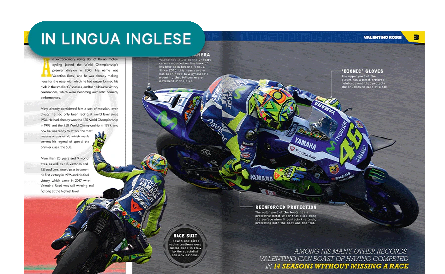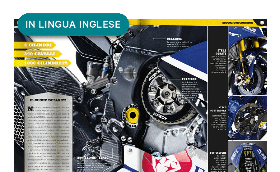 Immancabile, nelle pagine finali del fascicolo, un focus ampio e dettagliato sulla moto di Valentino e sulle sue caratteristiche tecniche.