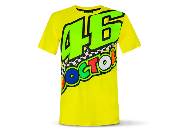 la t-shirt di Valentino Rossi personalizzata con i colori e i loghi di VR46.