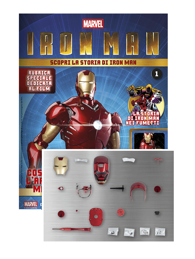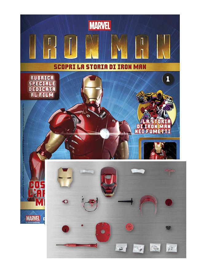 A grande richiesta è di nuovo disponibile l'iconica armatura di Tony Stark Mark III! Costruisci questo modello completamente articolato, con finiture dettagliate ed effetti luce mai visti prima! E non perdere i fantastici magazine, con le istruzioni per il montaggio e incredibili curiosità sul supereroe Marvel più amato.