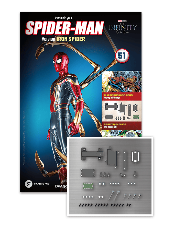 Grazie alle istruzioni passo passo, potrai montare il tuo modello di Iron Spider con la massima facilità: un assemblaggio semplice per un risultato eccezionale!