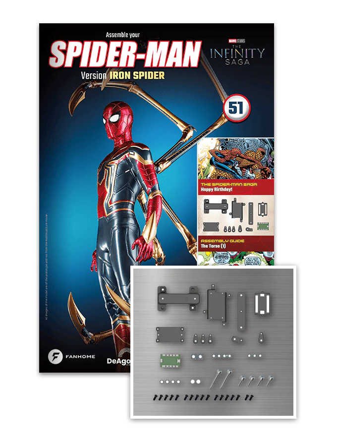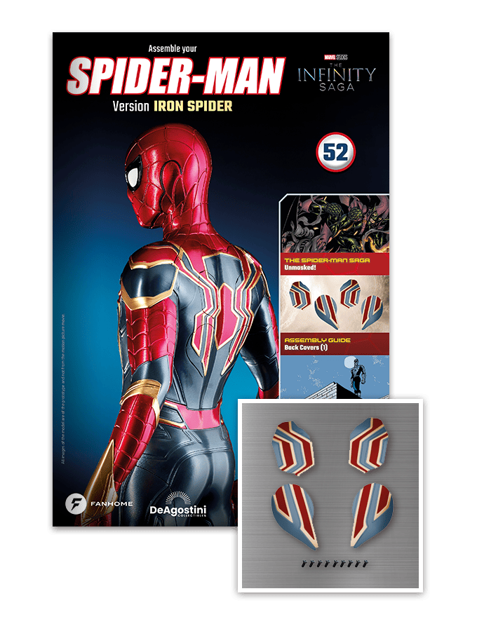 Questa magnifica riproduzione della tuta Iron Spider, incredibilmente dettagliata e di grandi dimensioni, è proposta in un’edizione esclusiva che i fan della Marvel non possono lasciarsi sfuggire. Inoltre, la collezione è accompagnata da un magazine ricco di illustrazioni sul mondo di Spider-Man.