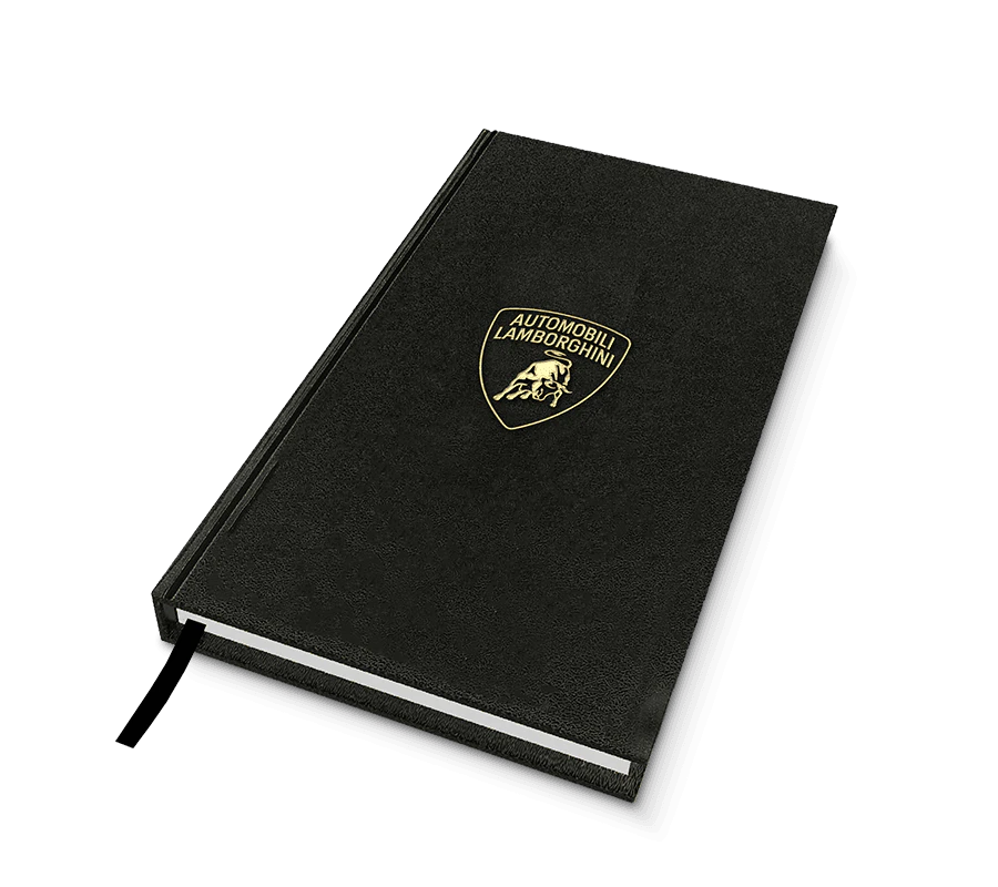 Un notebook con il leggendario Scudo Automobili Lamborghini in rilievo.