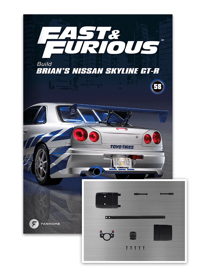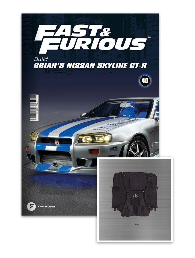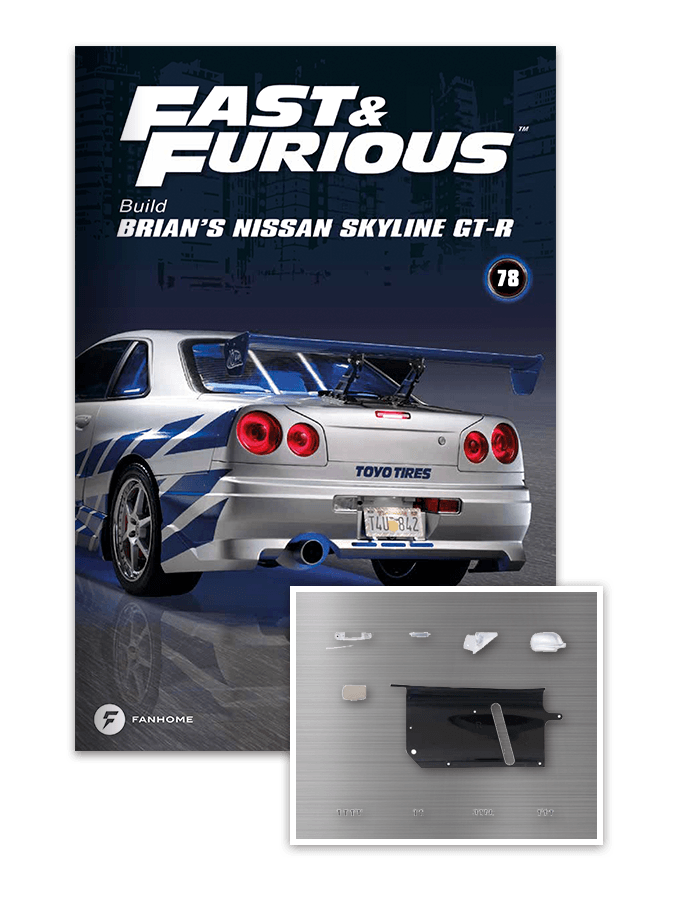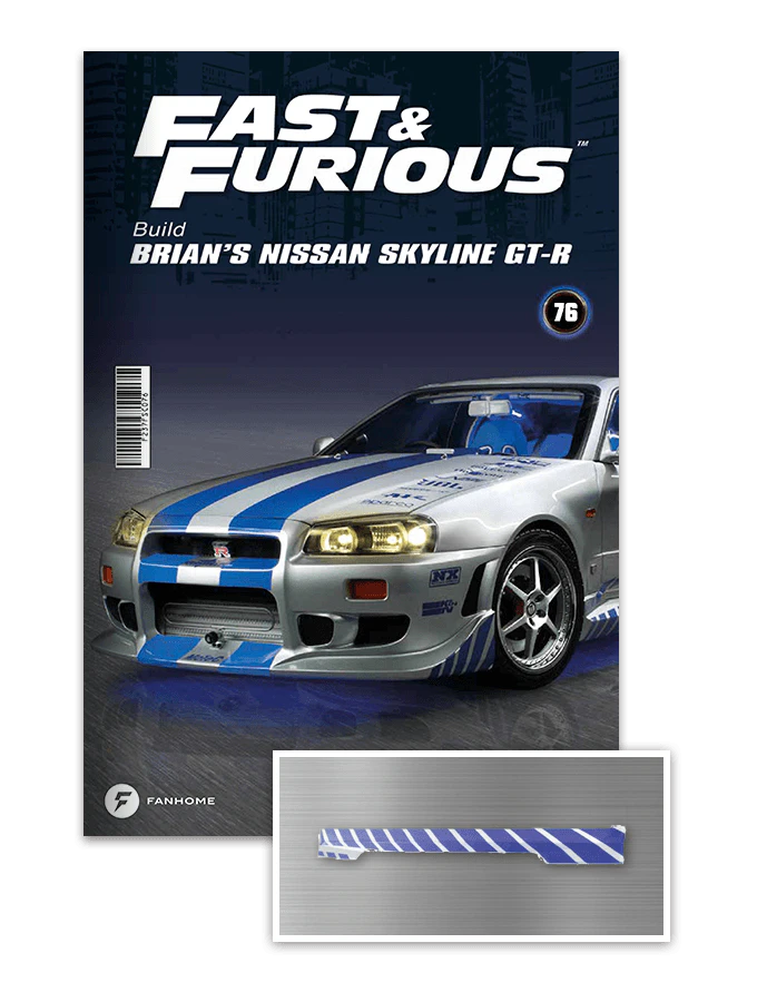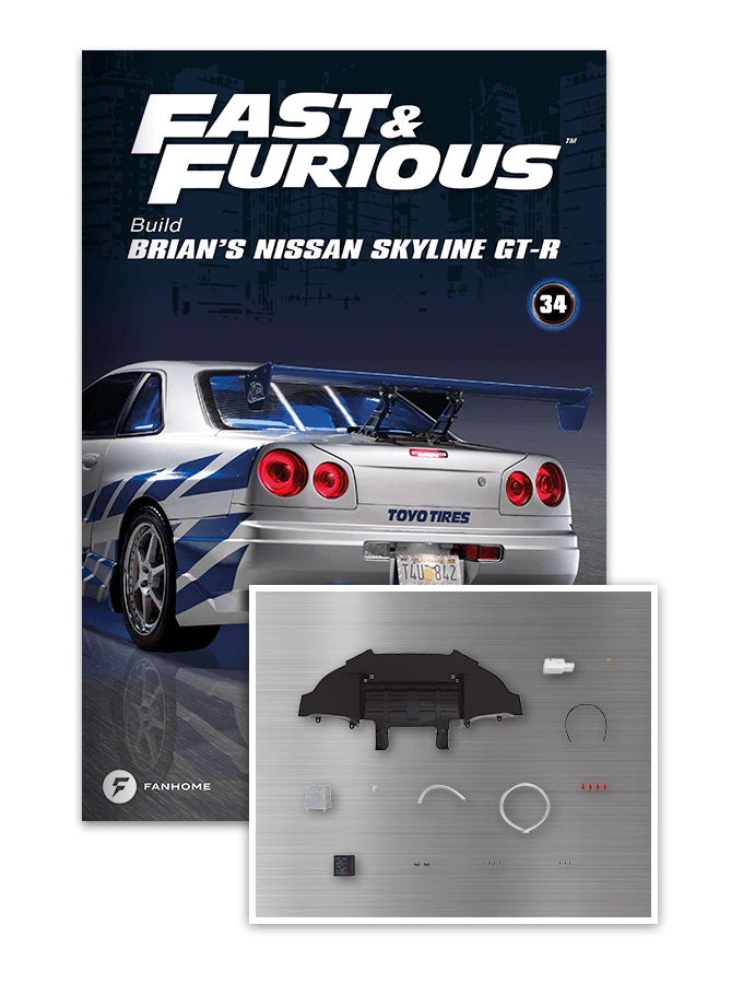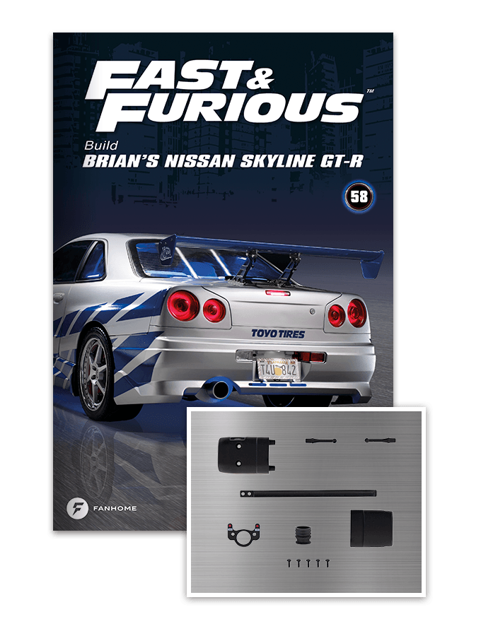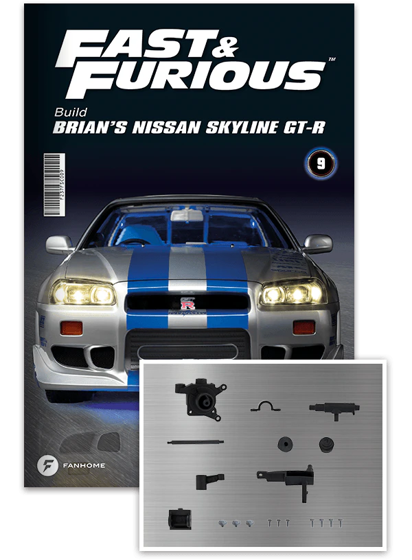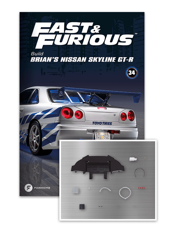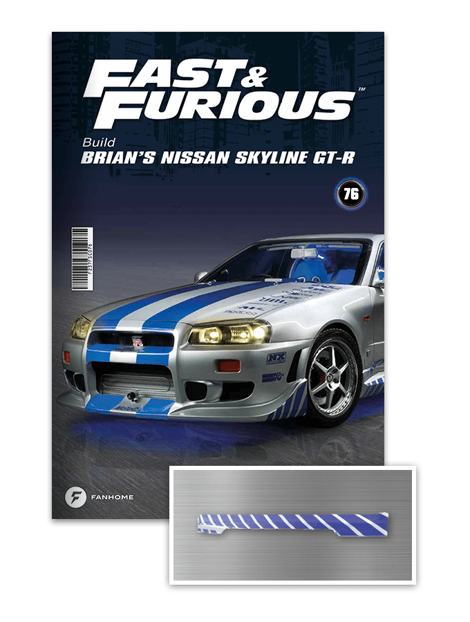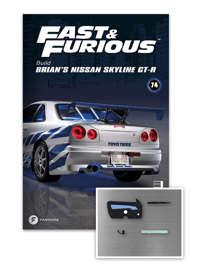 Diventa il nuovo Brian O'Conner e costruisci la tua Nissan Skyline GT-R (R34) personale, una replica fedele dell'auto del film 2 Fast 2 Furious di 58 centimetri di lunghezza e rifinita con ogni dettaglio.