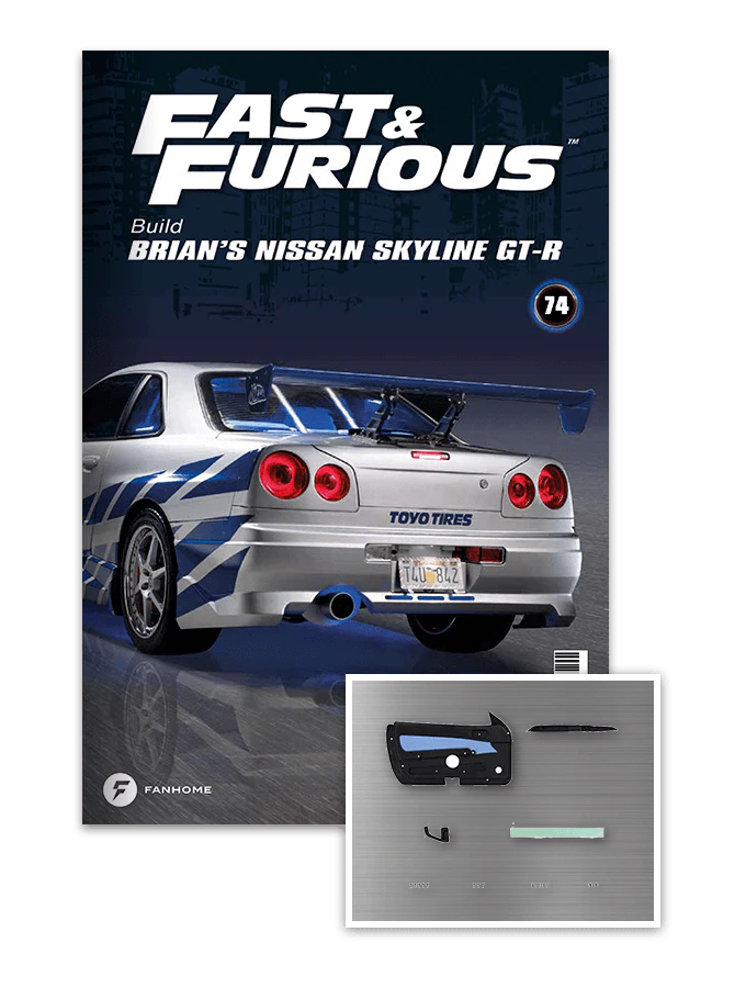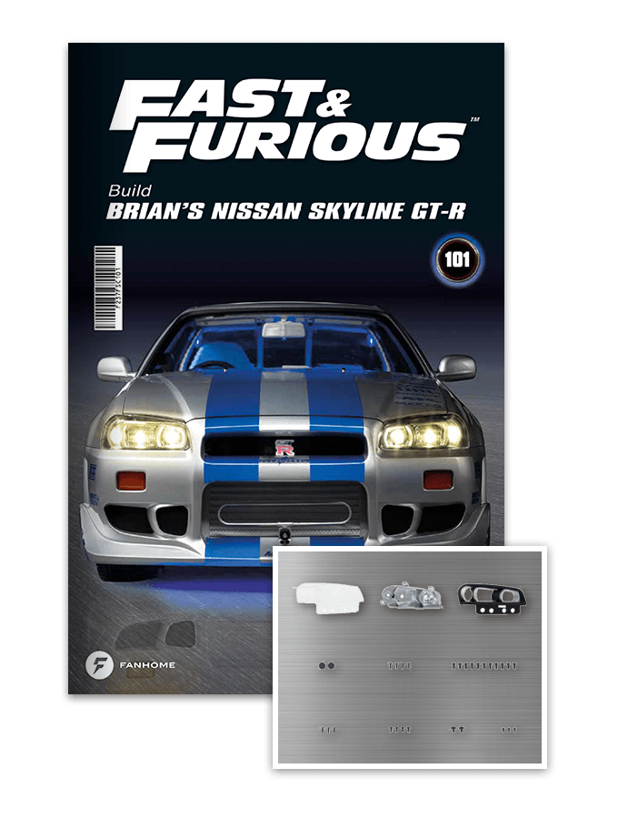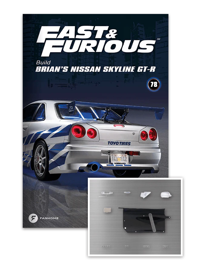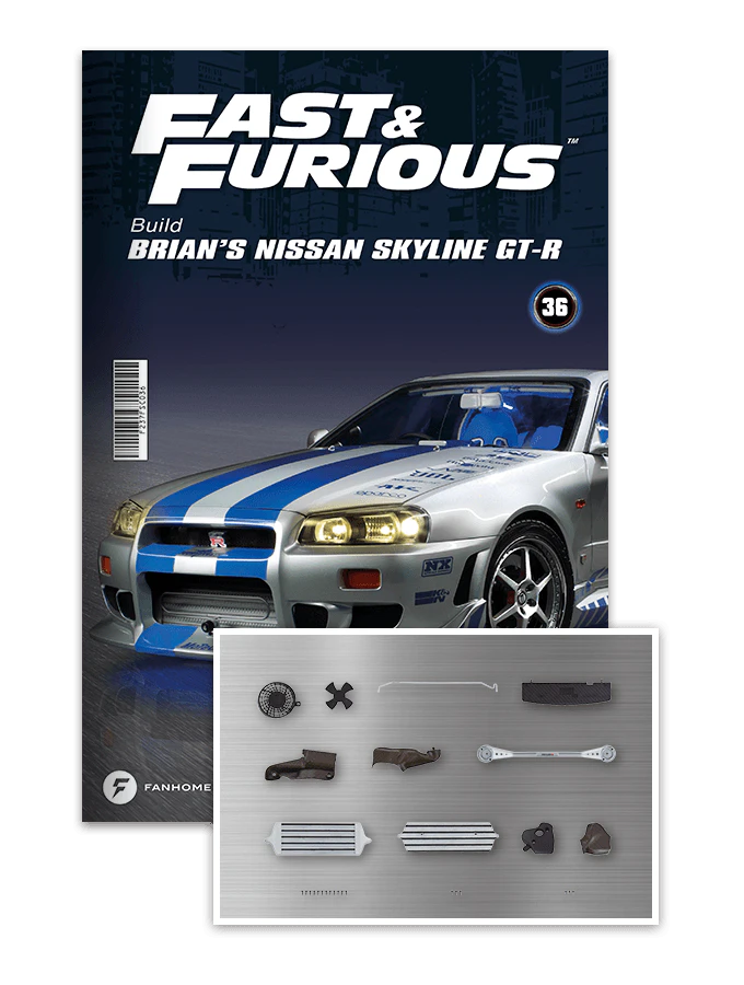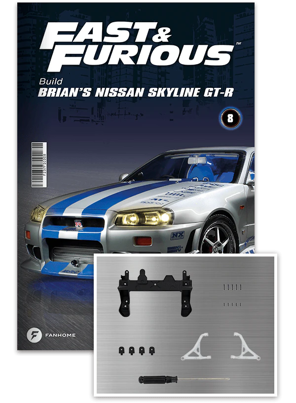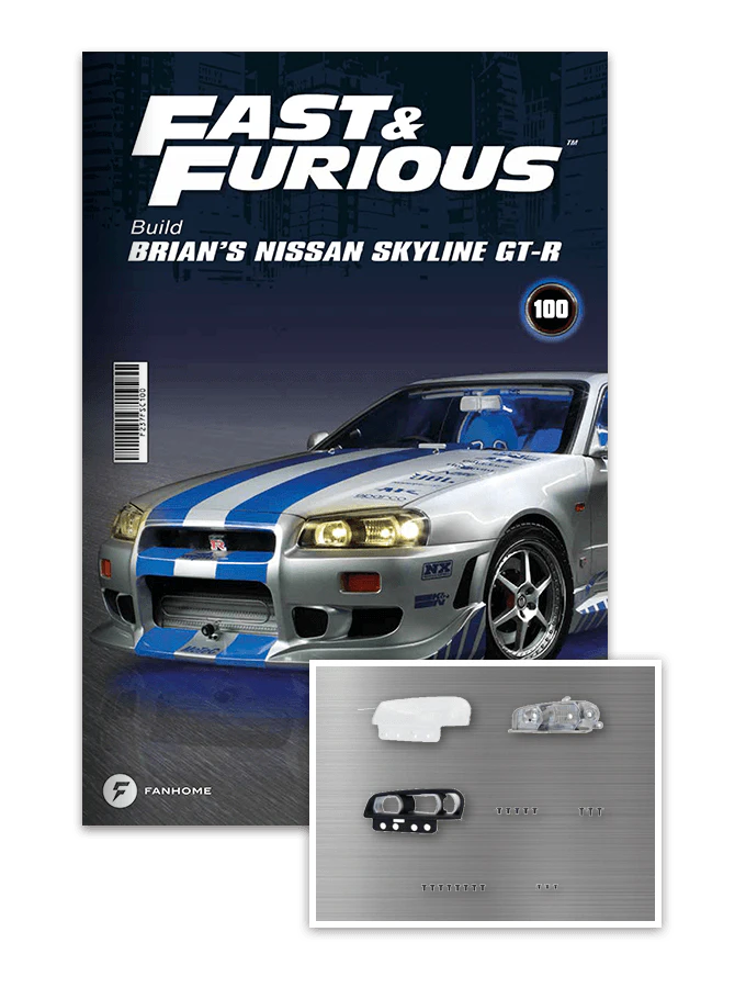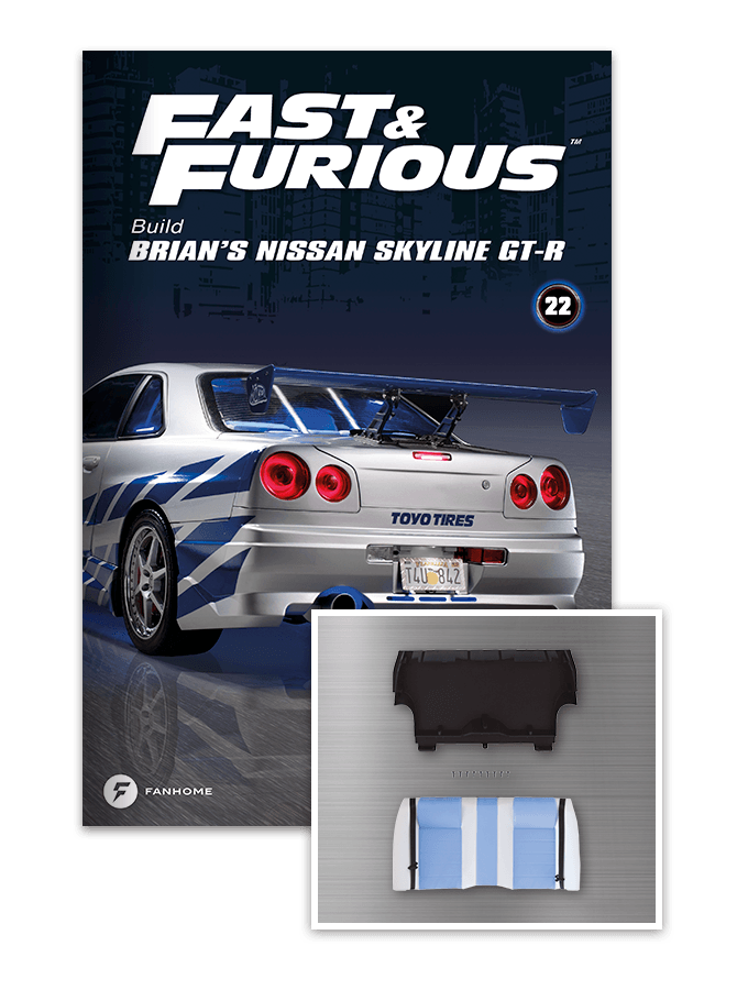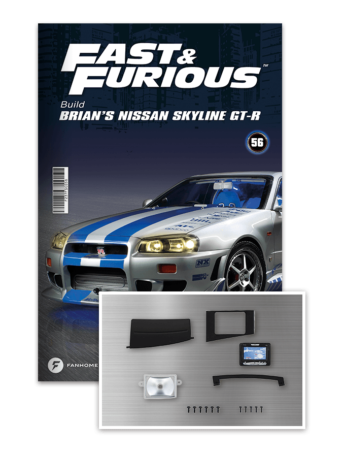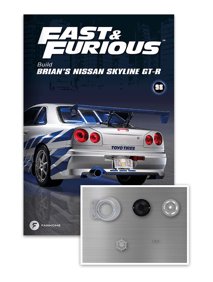 Diventa il nuovo Brian O'Conner e costruisci la tua Nissan Skyline GT-R (R34) personale, una replica fedele dell'auto del film 2 Fast 2 Furious di 58 centimetri di lunghezza e rifinita con ogni dettaglio.