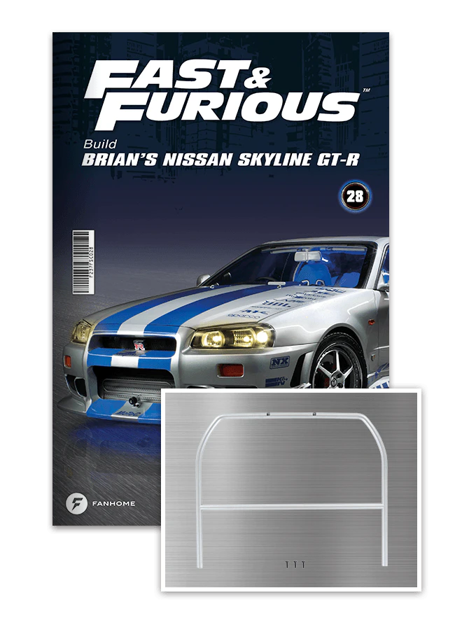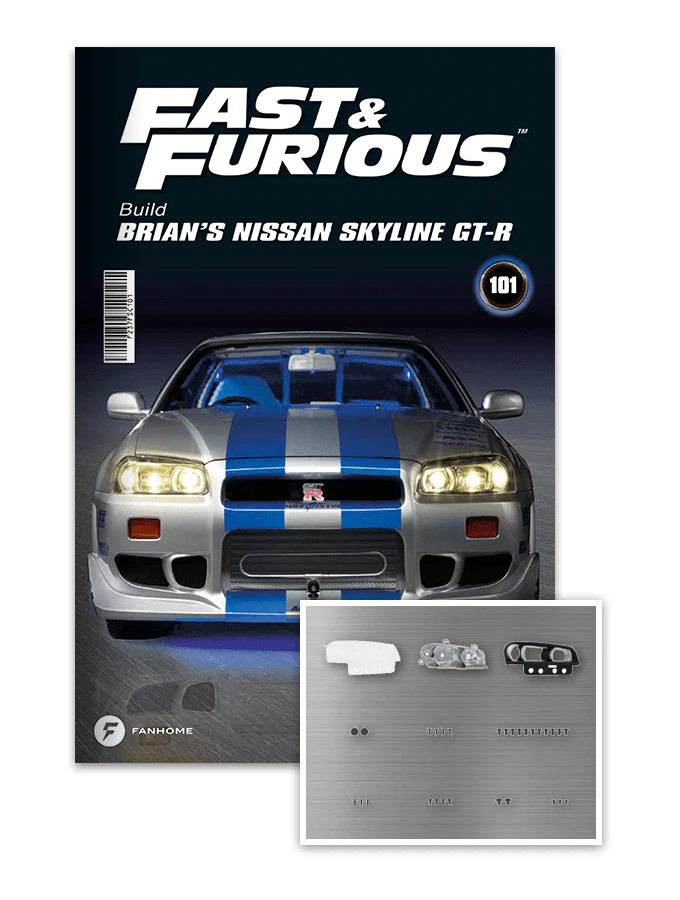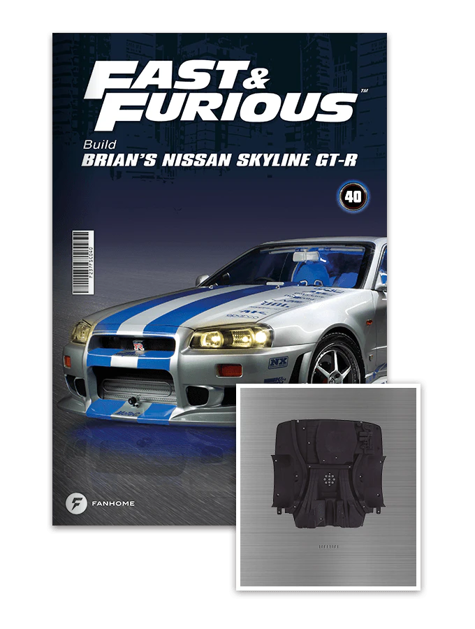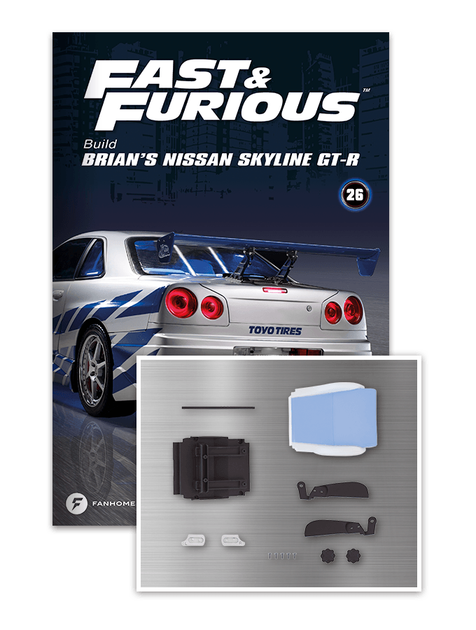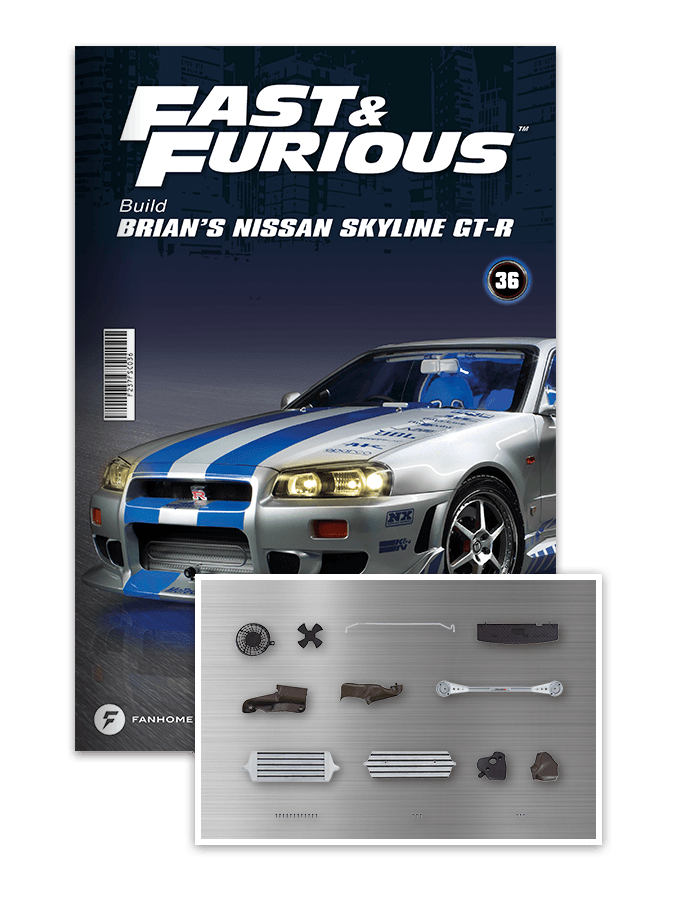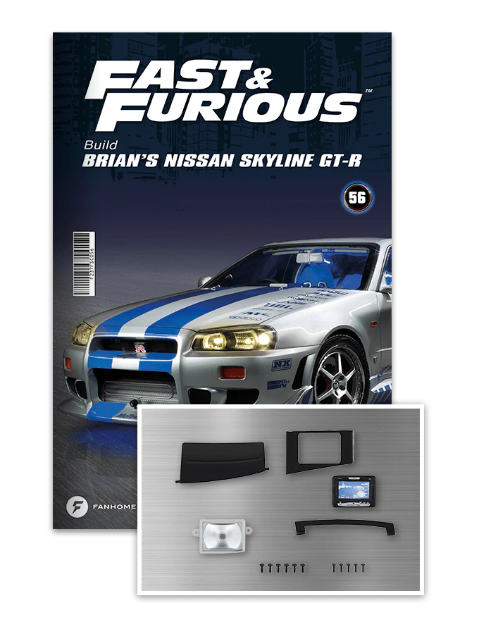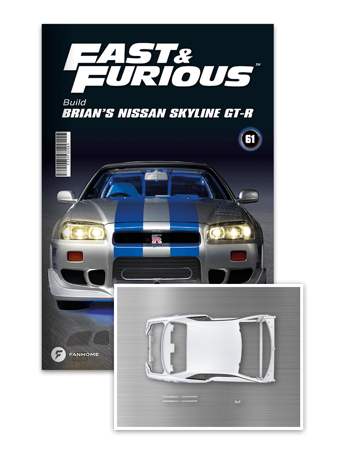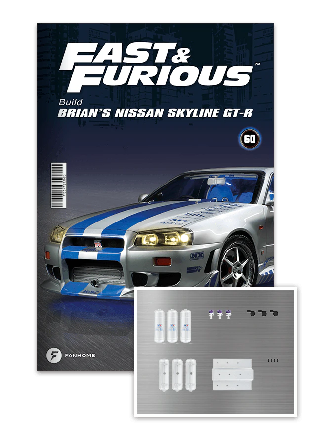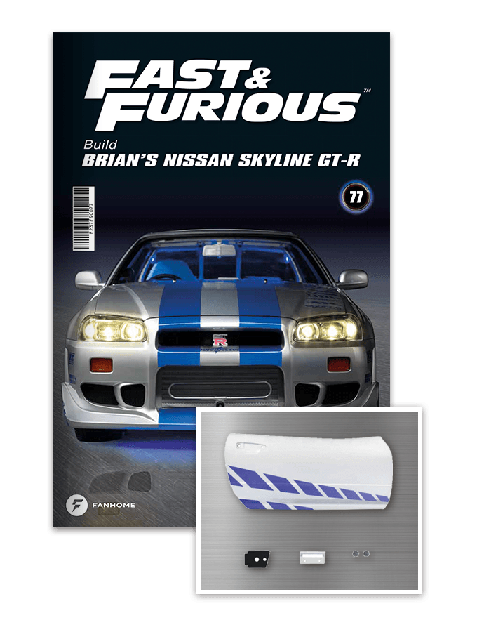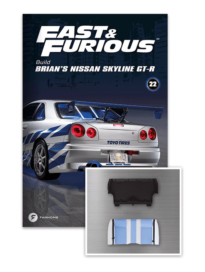Diventa il nuovo Brian O'Conner e costruisci la tua Nissan Skyline GT-R (R34) personale, una replica fedele dell'auto del film 2 Fast 2 Furious di 58 centimetri di lunghezza e rifinita con ogni dettaglio.