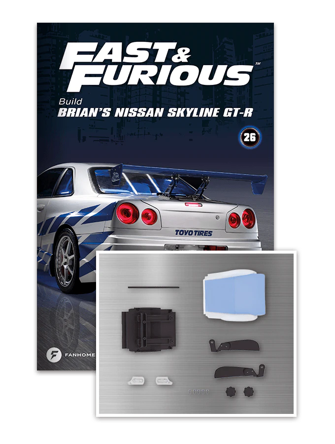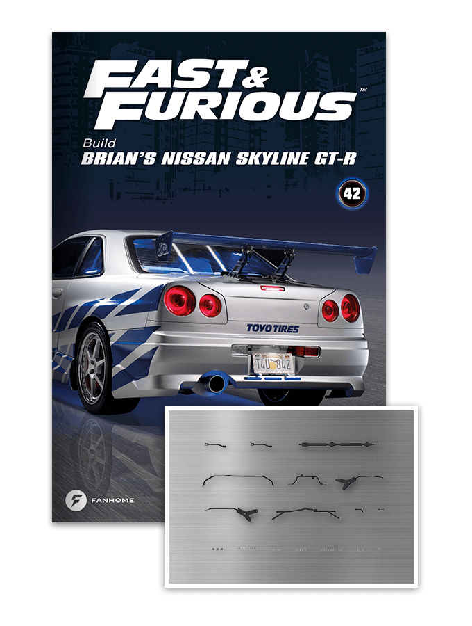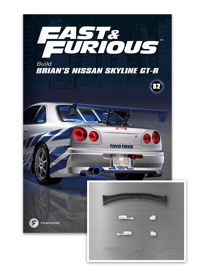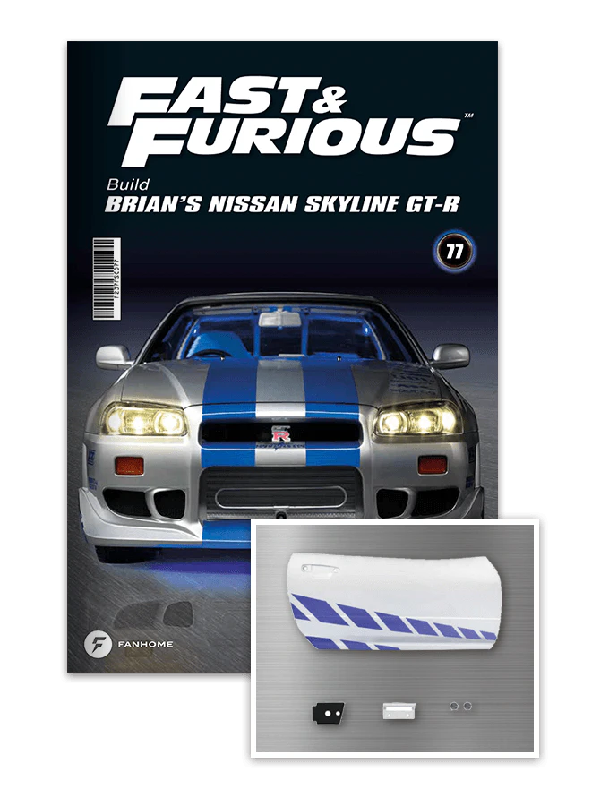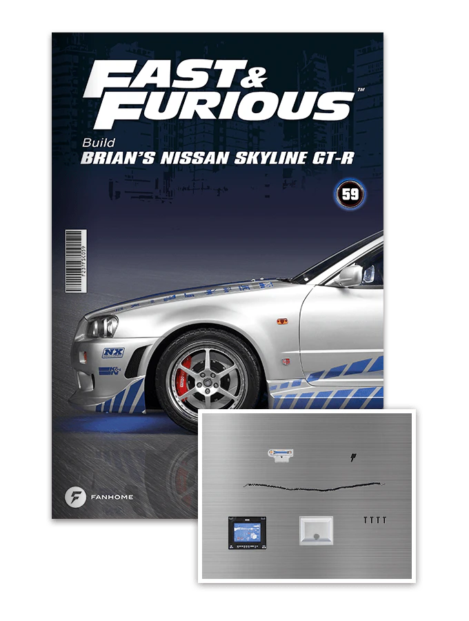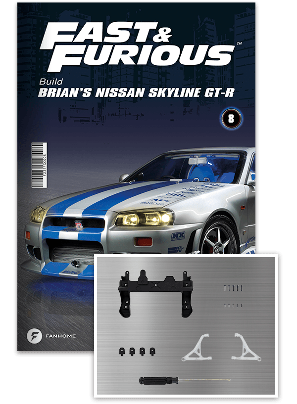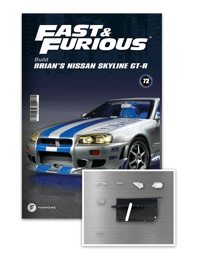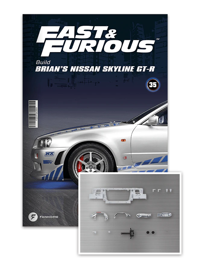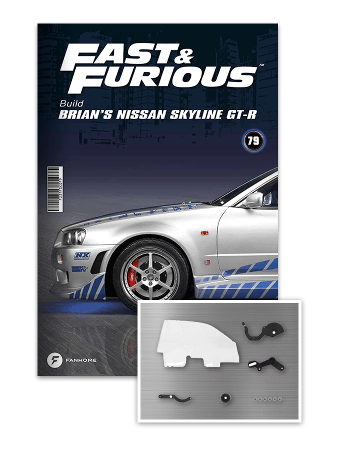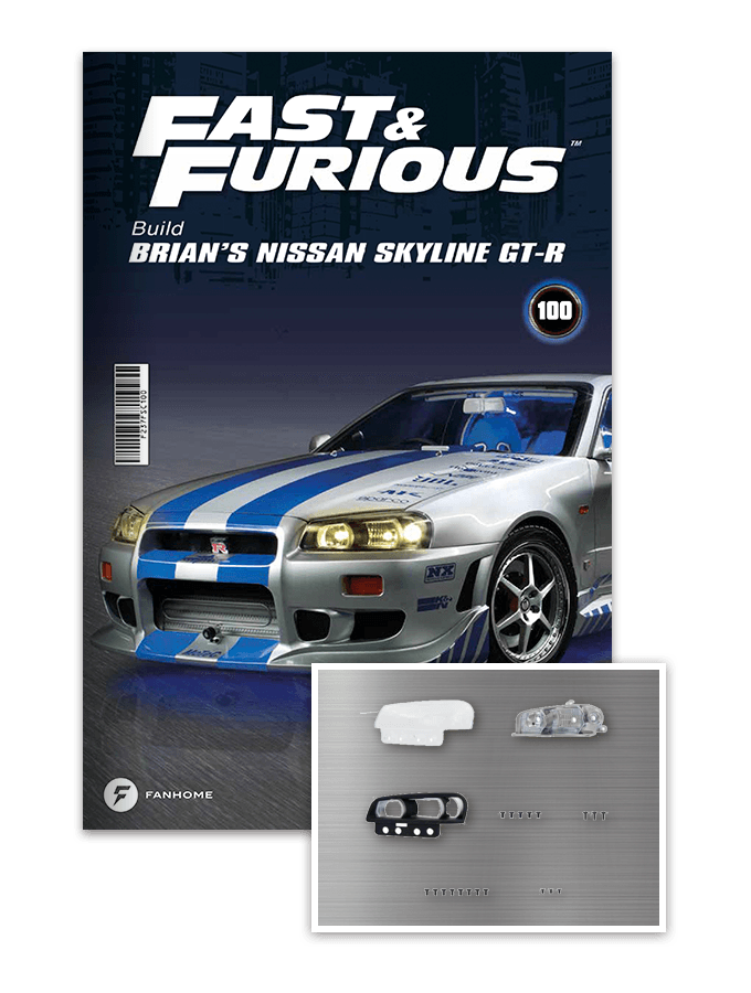 Diventa il nuovo Brian O'Conner e costruisci la tua Nissan Skyline GT-R (R34) personale, una replica fedele dell'auto del film 2 Fast 2 Furious di 58 centimetri di lunghezza e rifinita con ogni dettaglio.