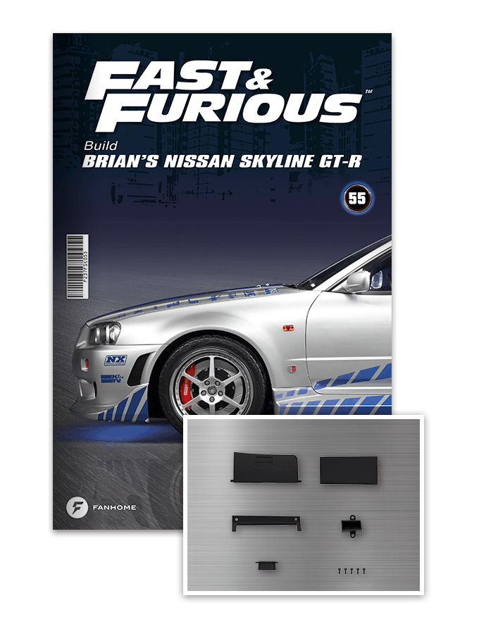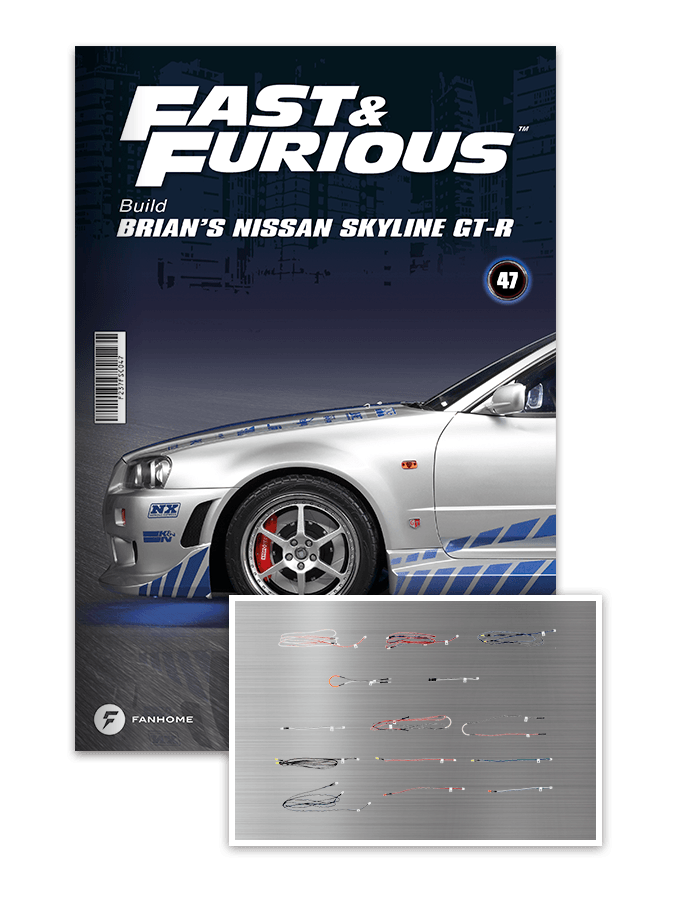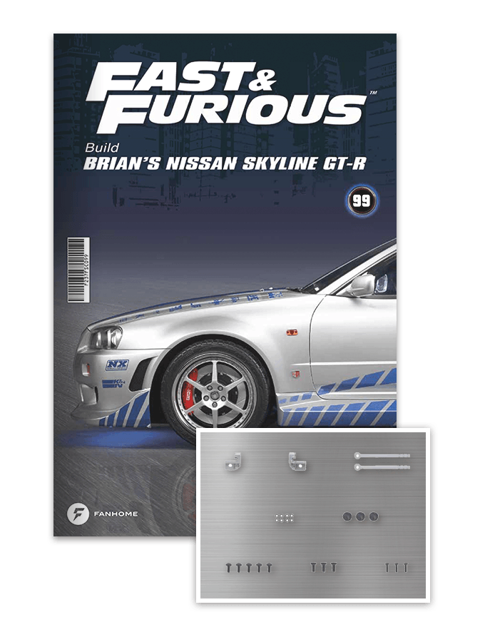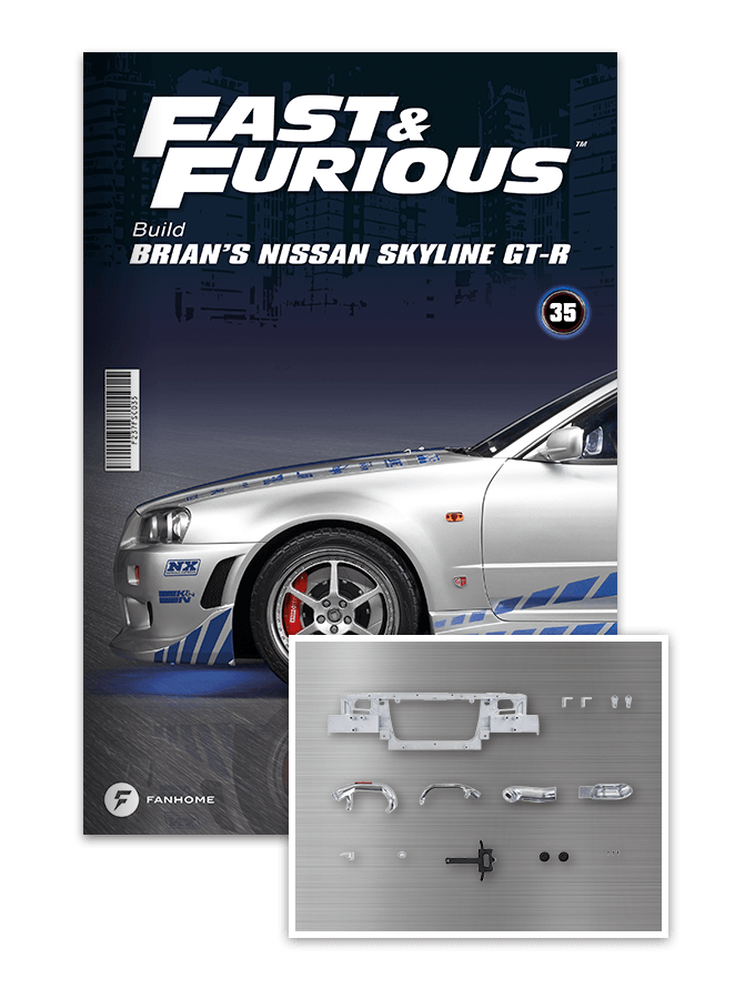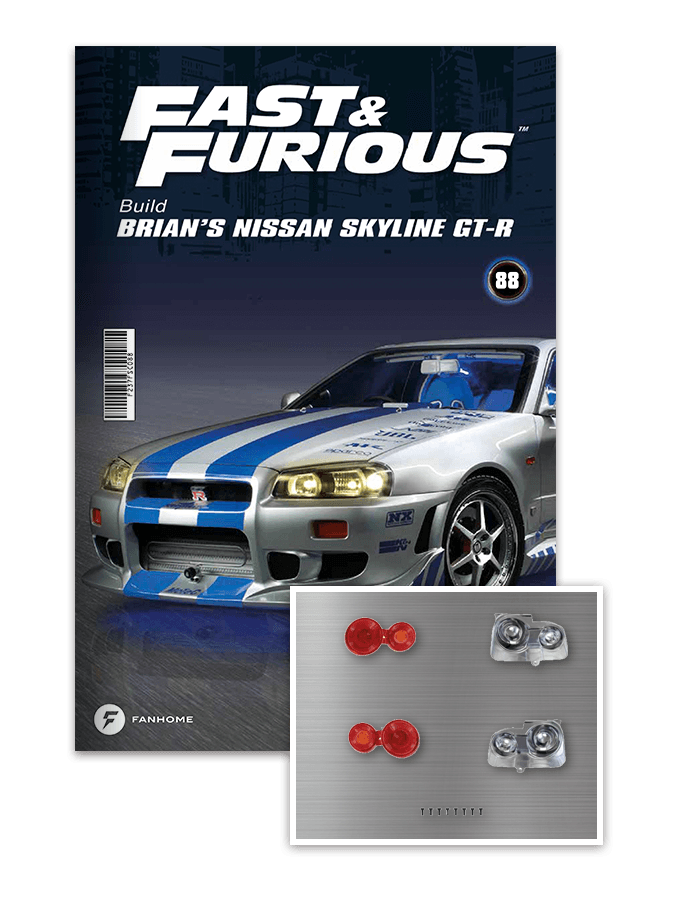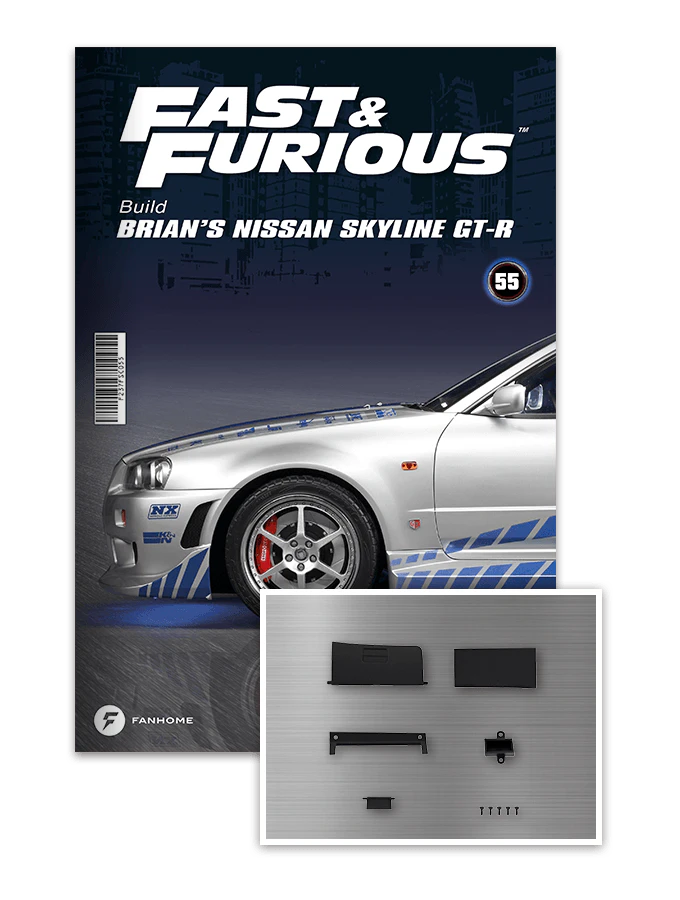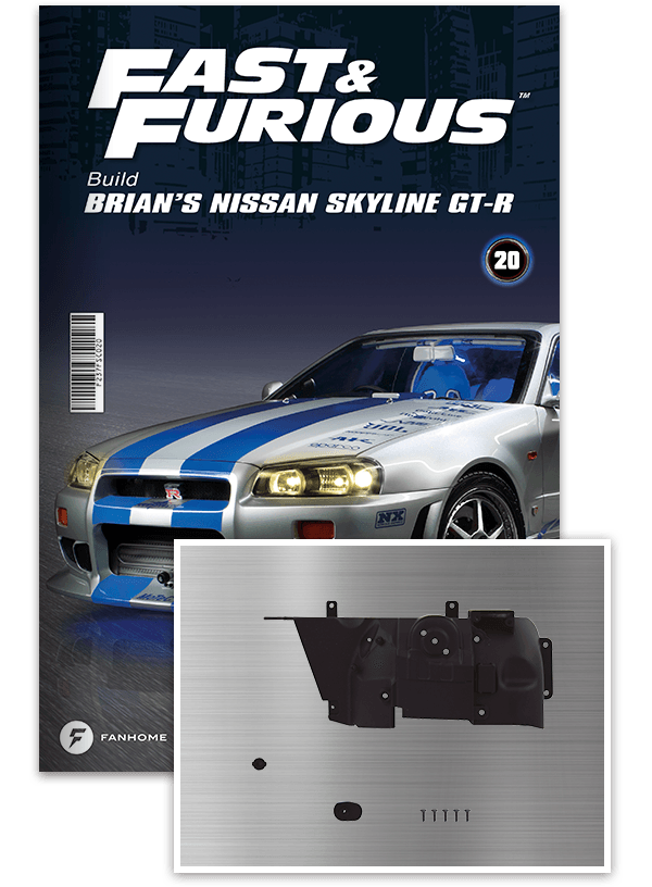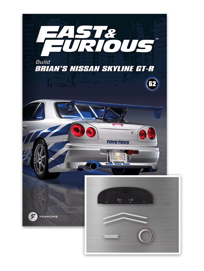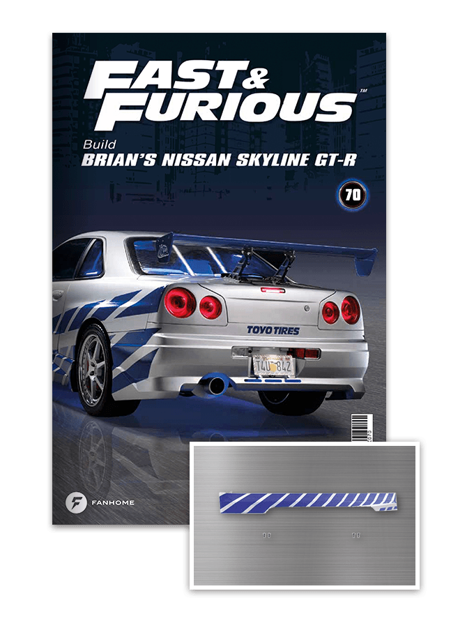 Diventa il nuovo Brian O'Conner e costruisci la tua Nissan Skyline GT-R (R34) personale, una replica fedele dell'auto del film 2 Fast 2 Furious di 58 centimetri di lunghezza e rifinita con ogni dettaglio.