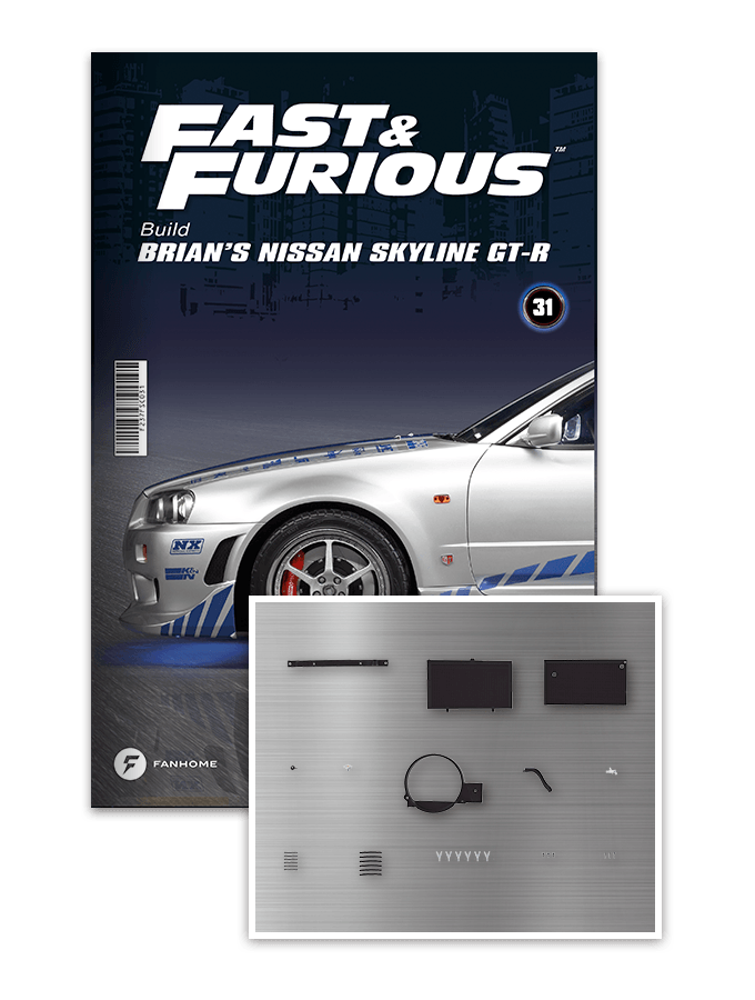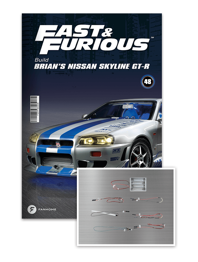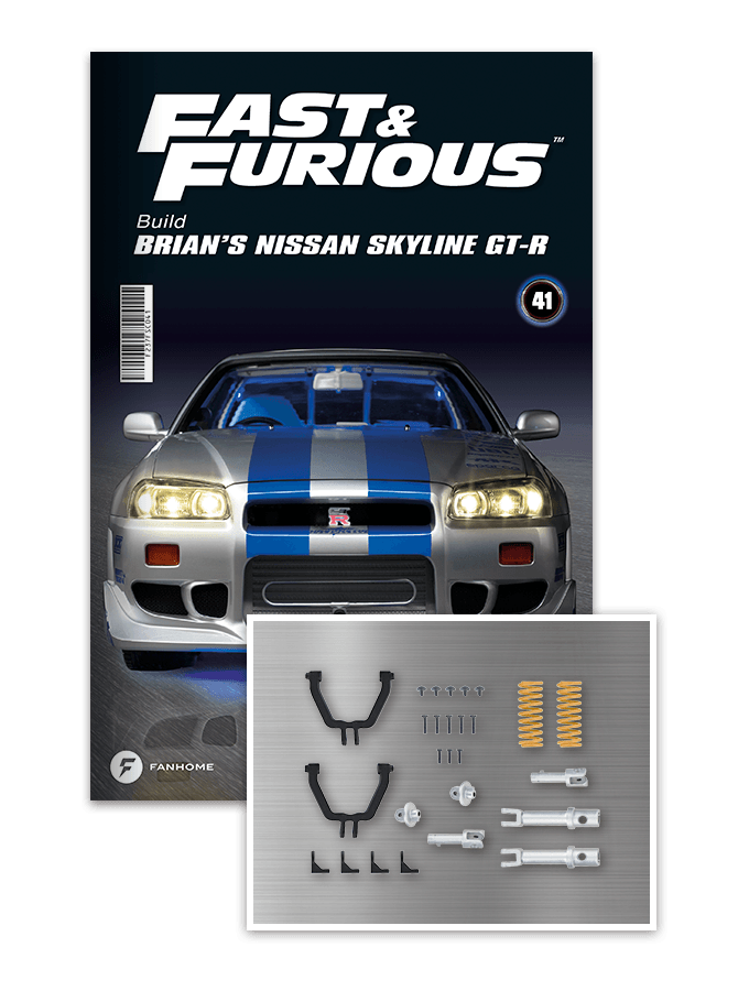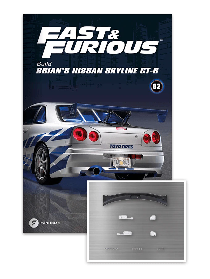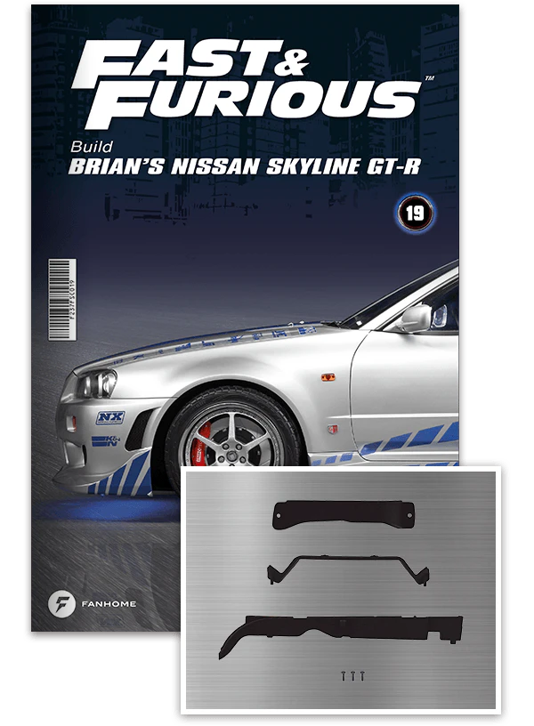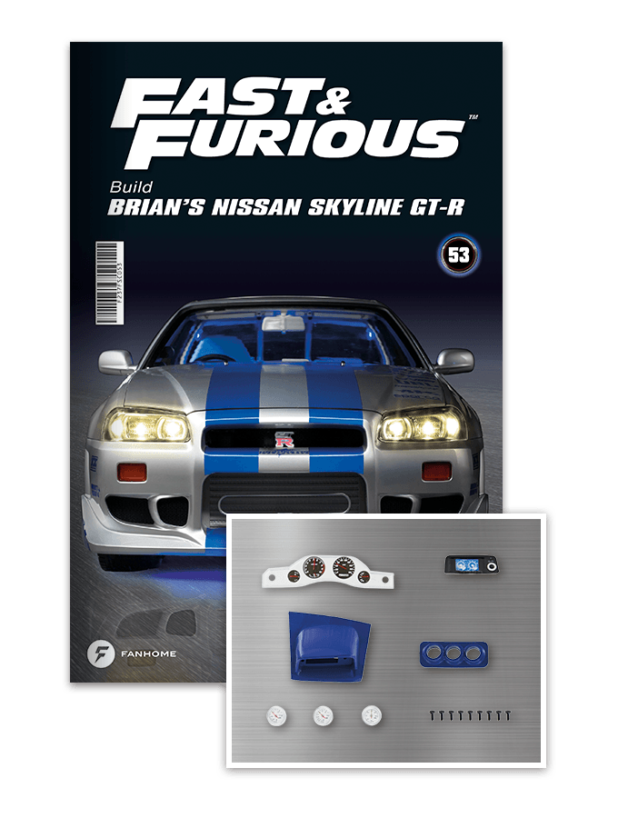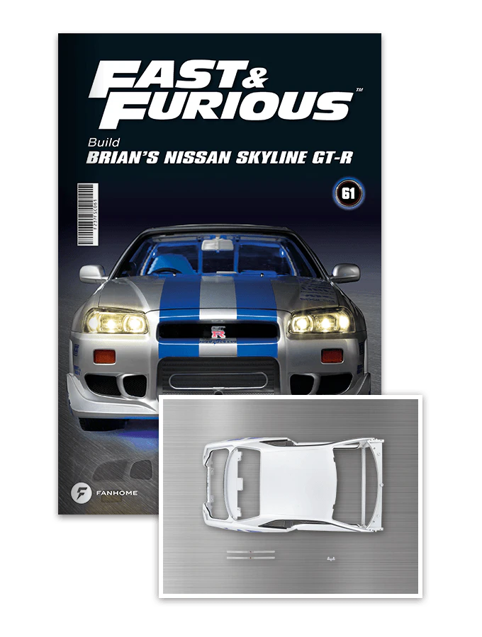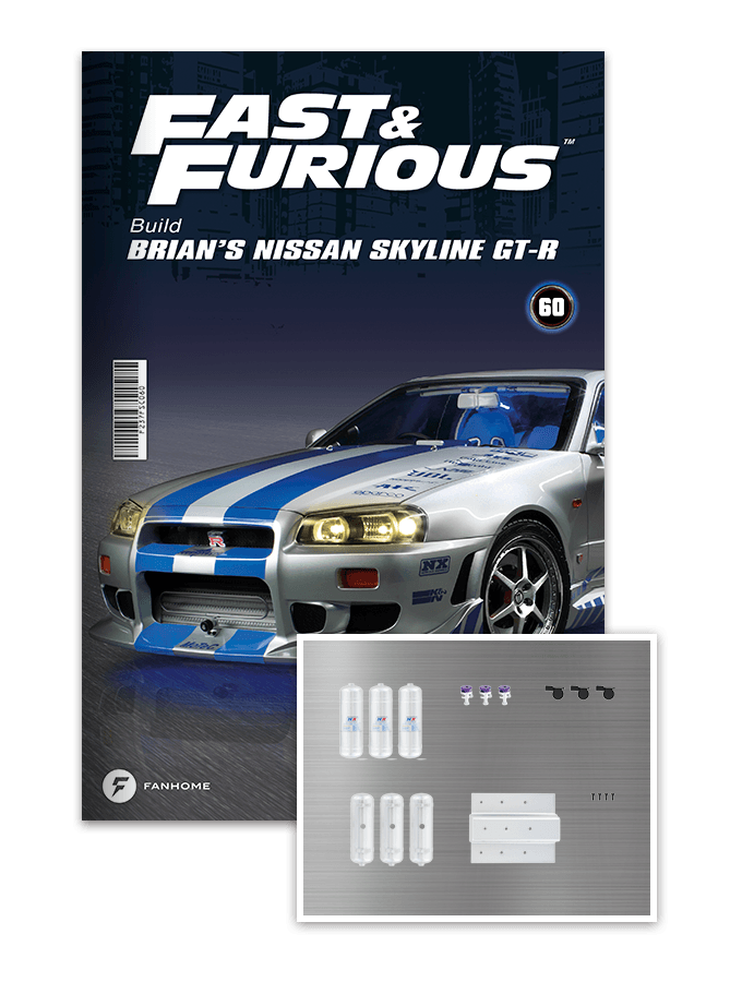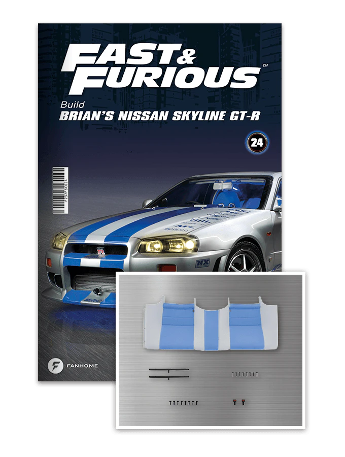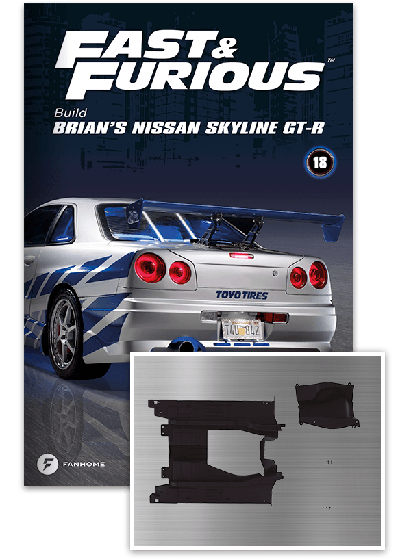 Diventa il nuovo Brian O'Conner e costruisci la tua Nissan Skyline GT-R (R34) personale, una replica fedele dell'auto del film 2 Fast 2 Furious di 58 centimetri di lunghezza e rifinita con ogni dettaglio.