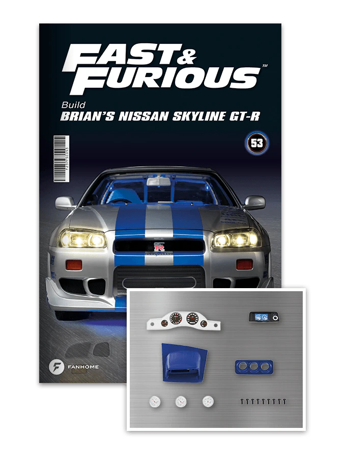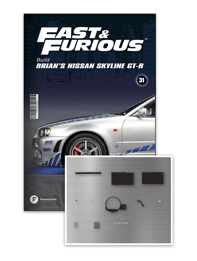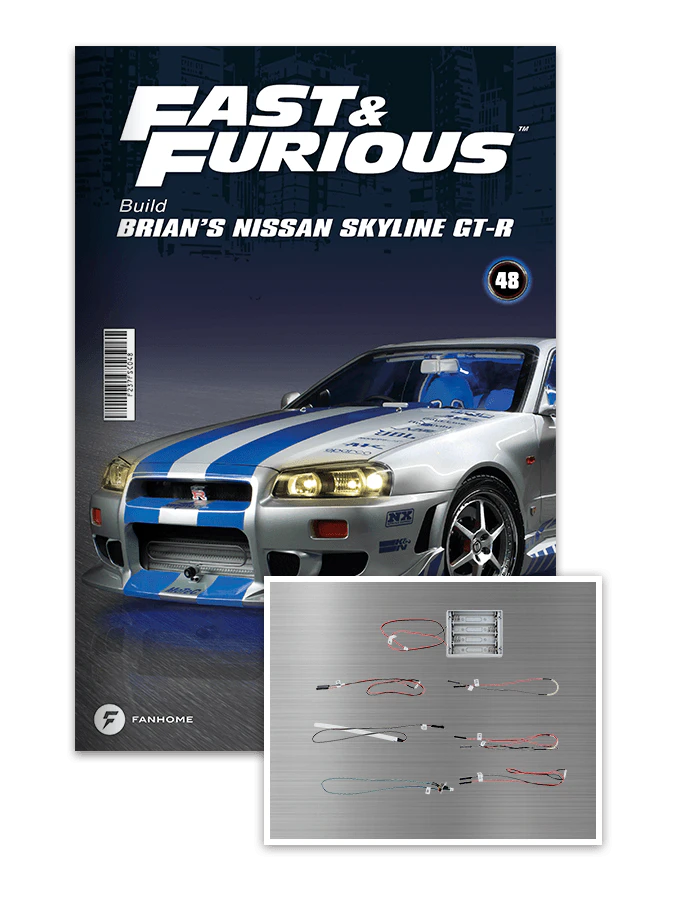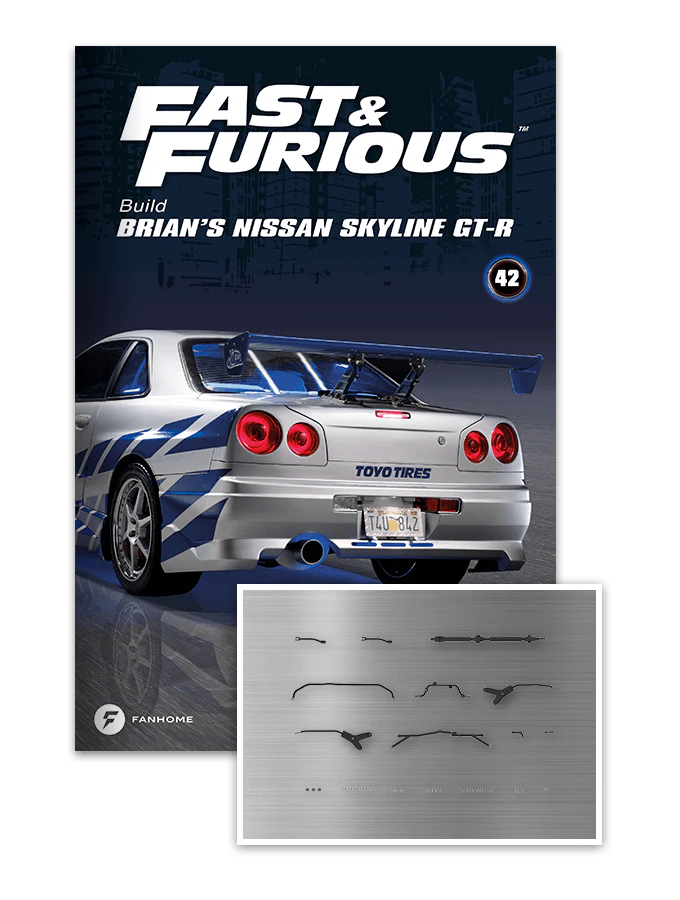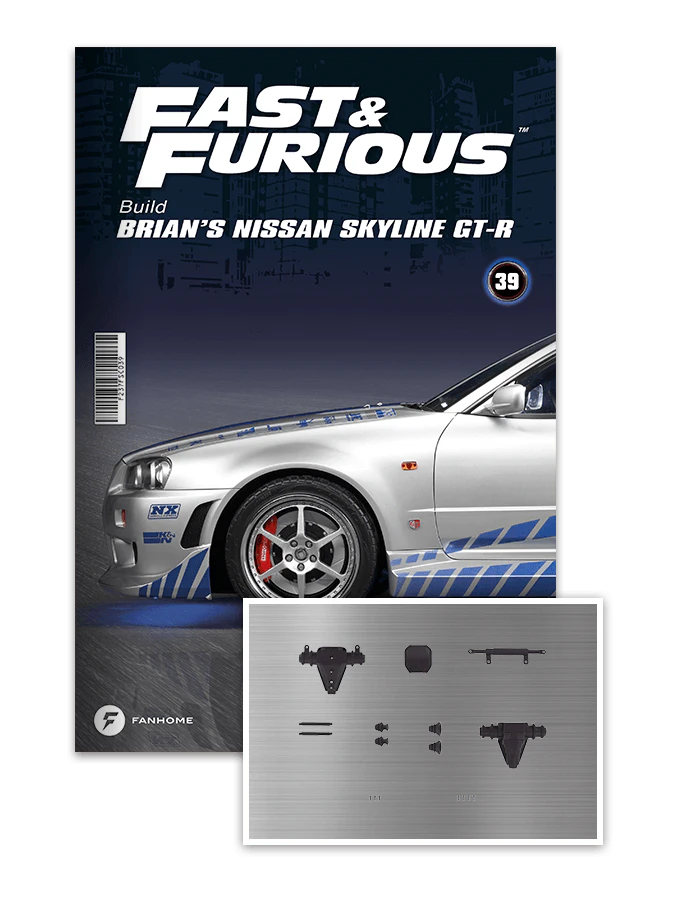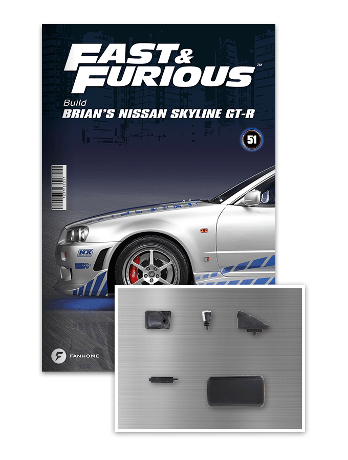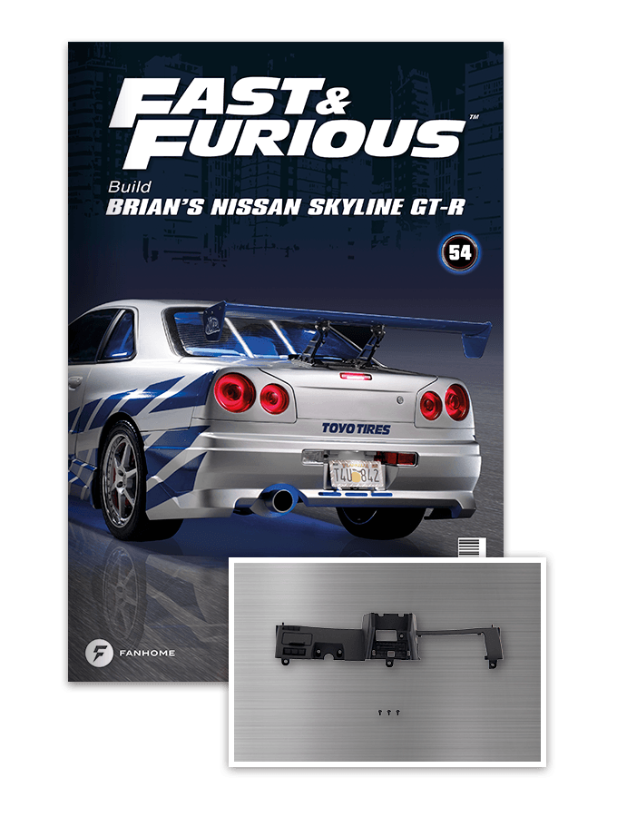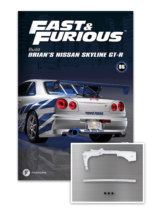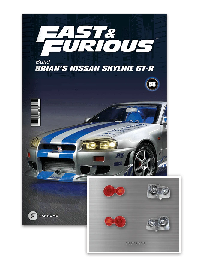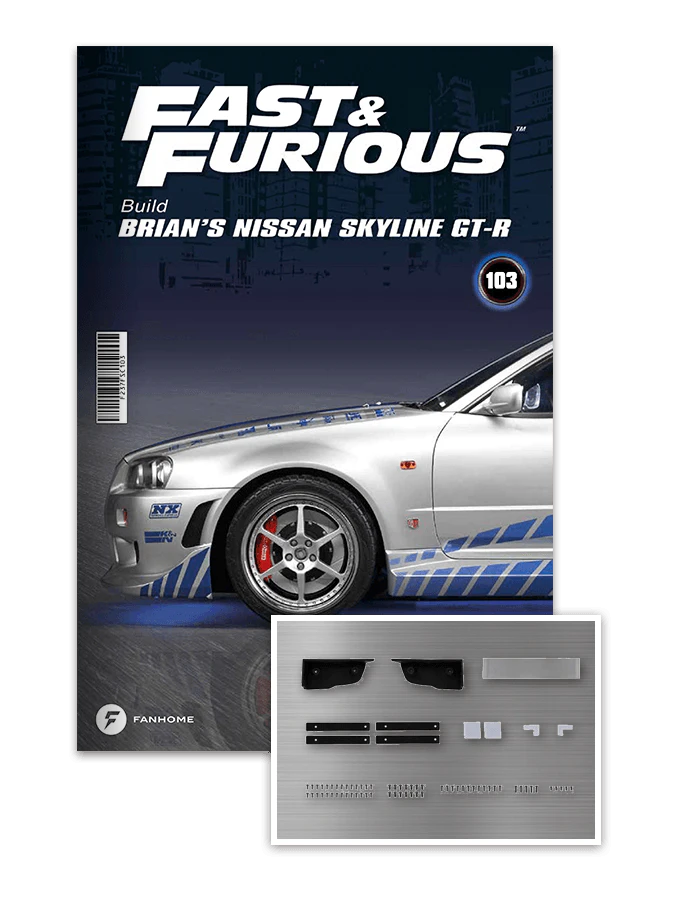 Diventa il nuovo Brian O'Conner e costruisci la tua Nissan Skyline GT-R (R34) personale, una replica fedele dell'auto del film 2 Fast 2 Furious di 58 centimetri di lunghezza e rifinita con ogni dettaglio.