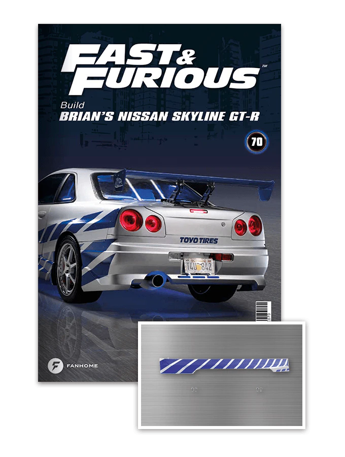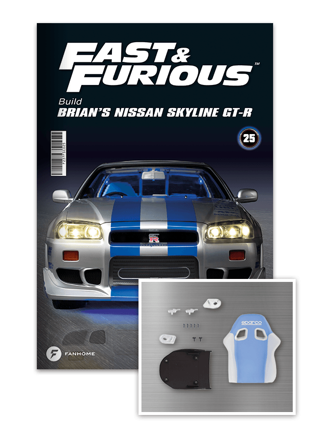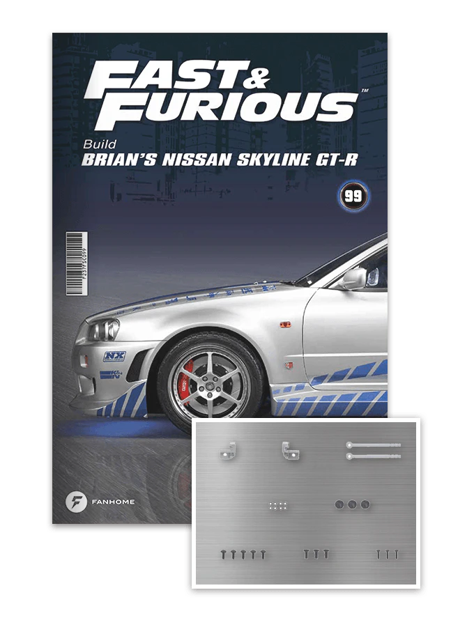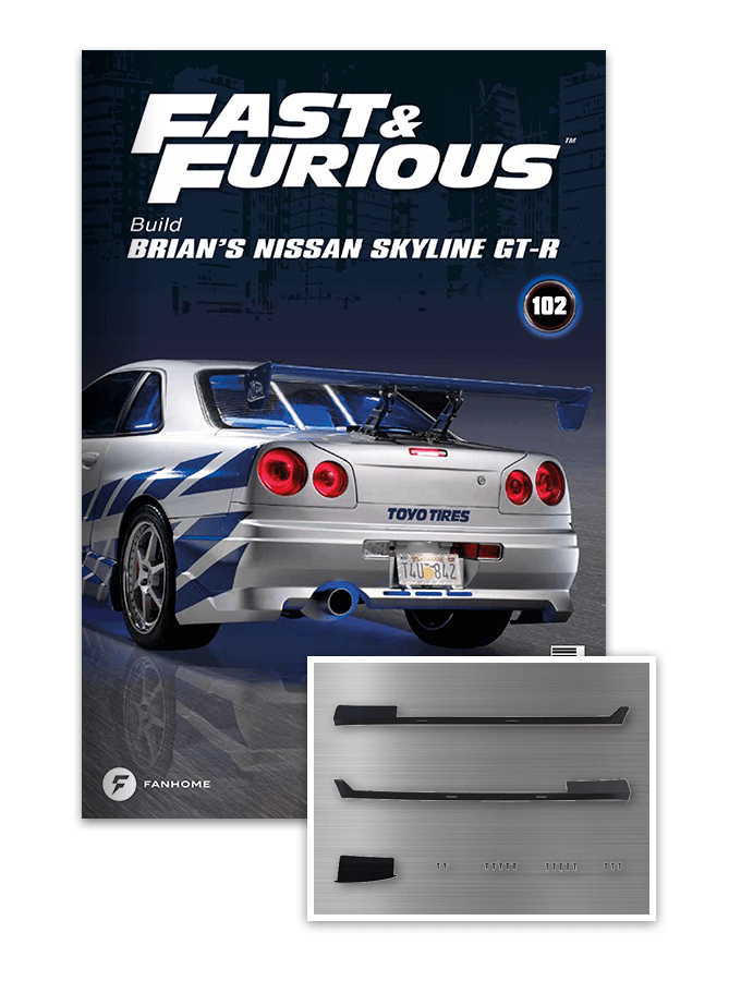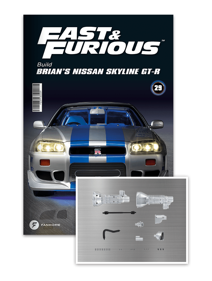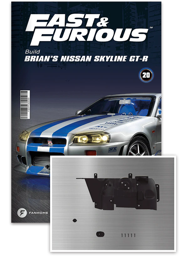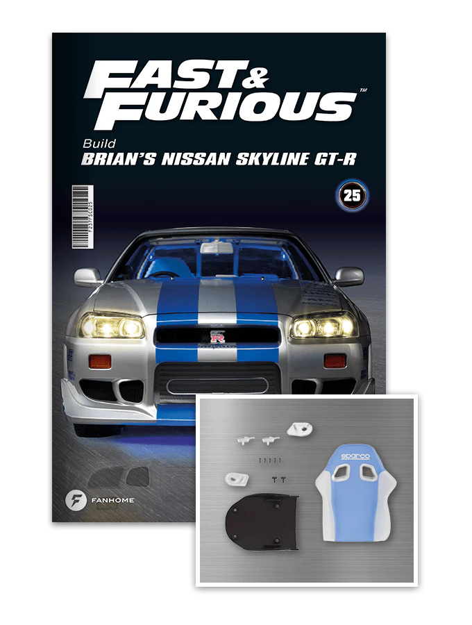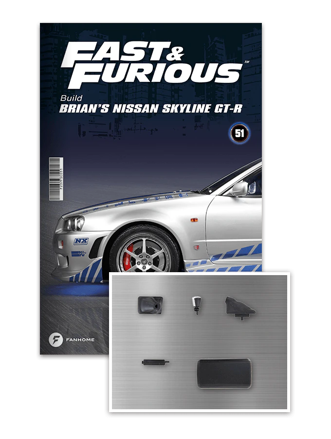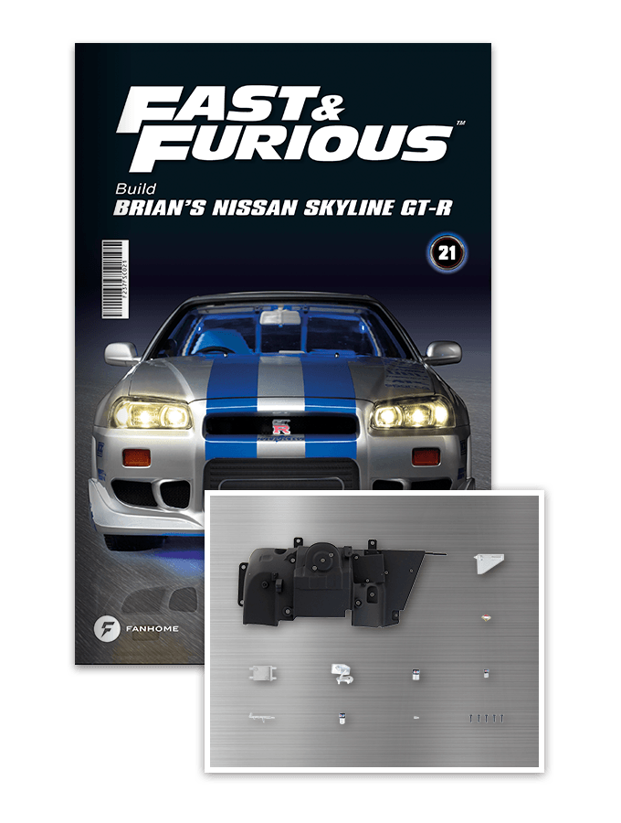 Diventa il nuovo Brian O'Conner e costruisci la tua Nissan Skyline GT-R (R34) personale, una replica fedele dell'auto del film 2 Fast 2 Furious di 58 centimetri di lunghezza e rifinita con ogni dettaglio.