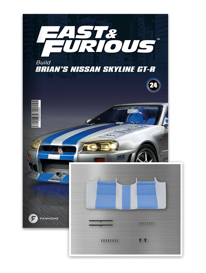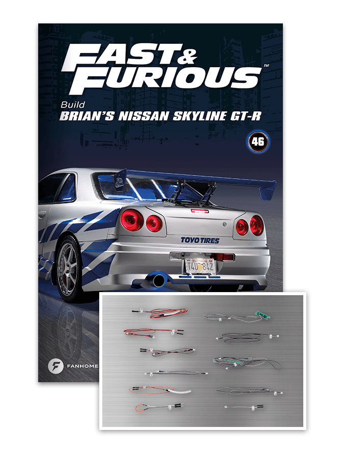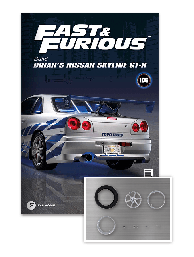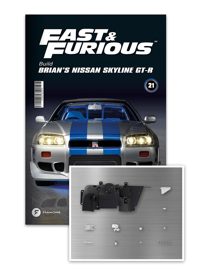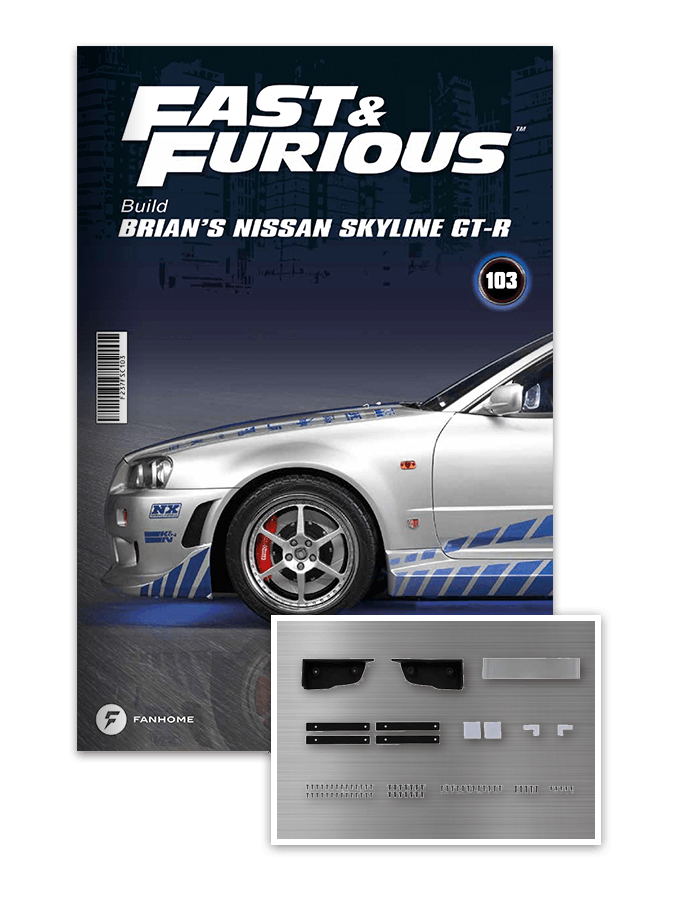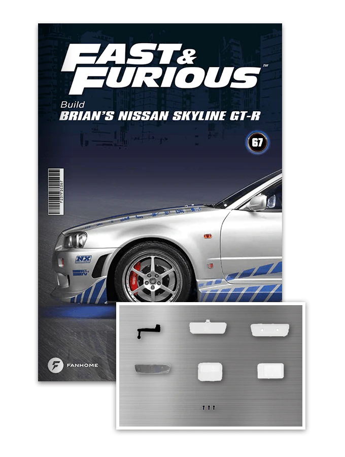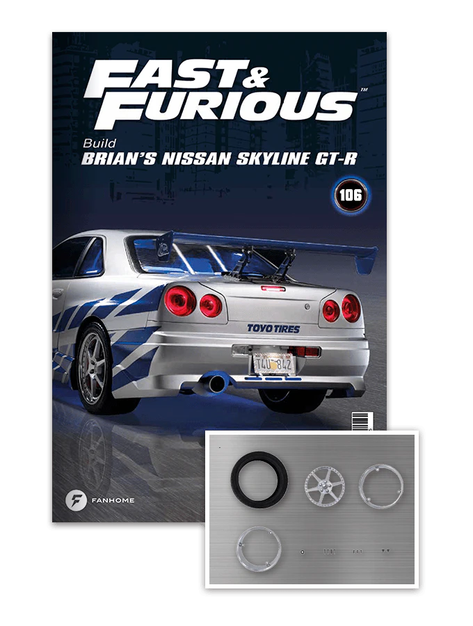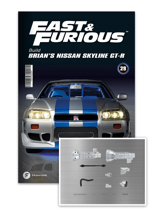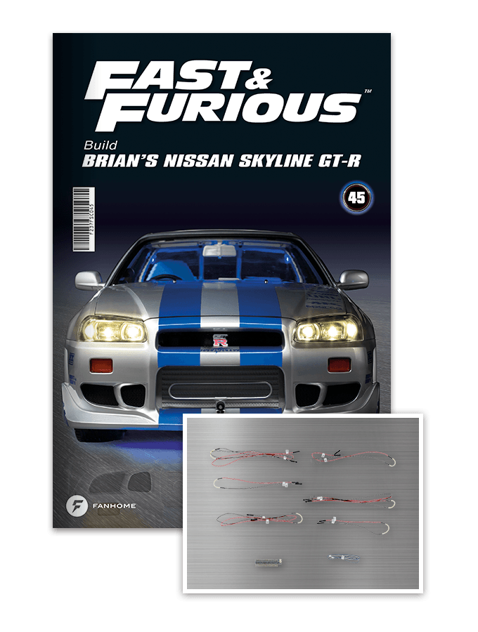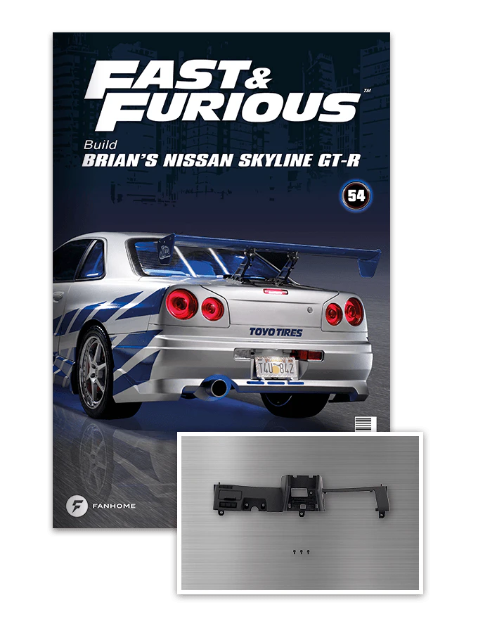 Diventa il nuovo Brian O'Conner e costruisci la tua Nissan Skyline GT-R (R34) personale, una replica fedele dell'auto del film 2 Fast 2 Furious di 58 centimetri di lunghezza e rifinita con ogni dettaglio.