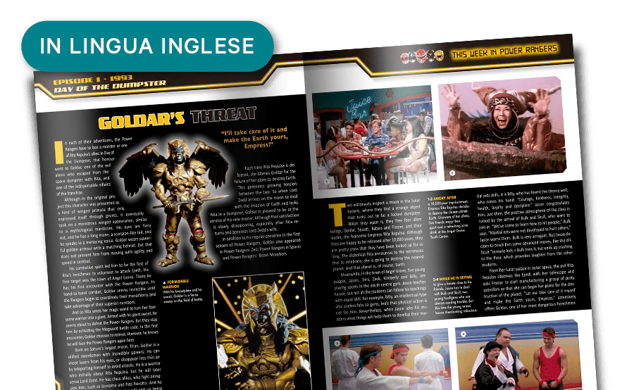 Scopri tutti i dettagli di questa serie leggendaria, le sue origini, gli aneddoti del dietro le quinte e l'impatto che i Power Rangers hanno avuto sulla cultura pop e sui fan di tutto il mondo. Esplora ogni episodio nel dettaglio e leggi tutte le curiosità sulla produzione e su tutti i mostri e cattivi che hanno messo alla prova i Power Rangers in ogni puntata.