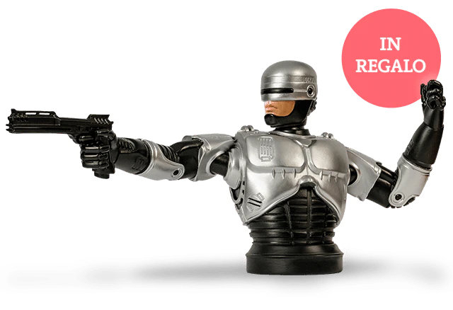 Se paghi con carta di credito o PayPal ricevi in regalo il busto di Robocop, in esclusiva per i collezionisti più esigenti! È stampato in resina e fedele all’armatura originale. Da non perdere! Inoltre, non pagherai le spese di spedizione per tutta la durata della collezione.