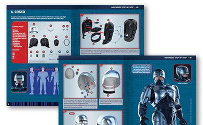 In ogni fascicolo troverai istruzioni dettagliate per montare facilmente il tuo RoboCop, con descrizione dei componenti allegati e schemi di assemblaggio.
