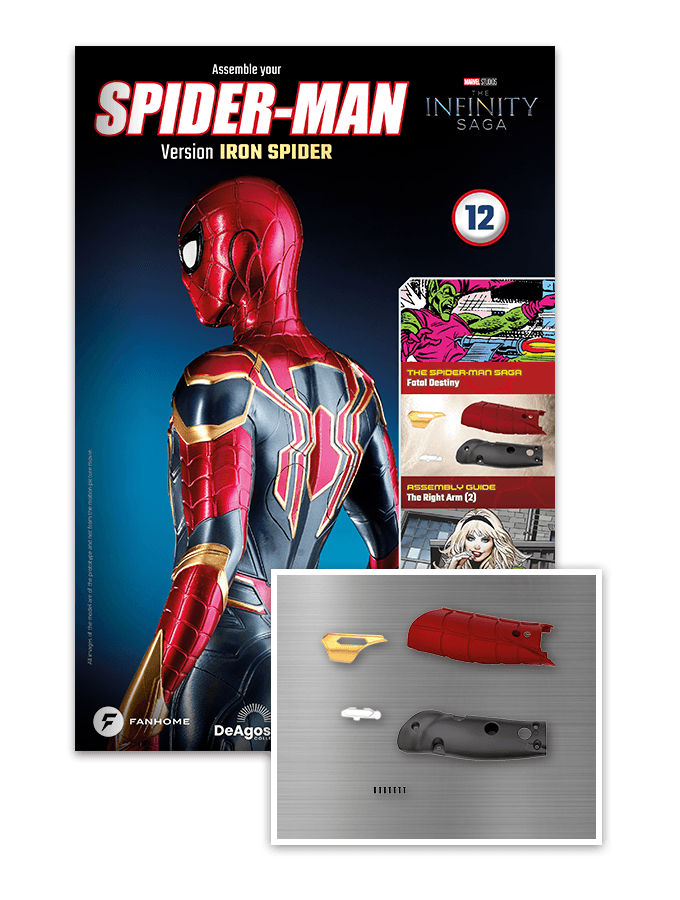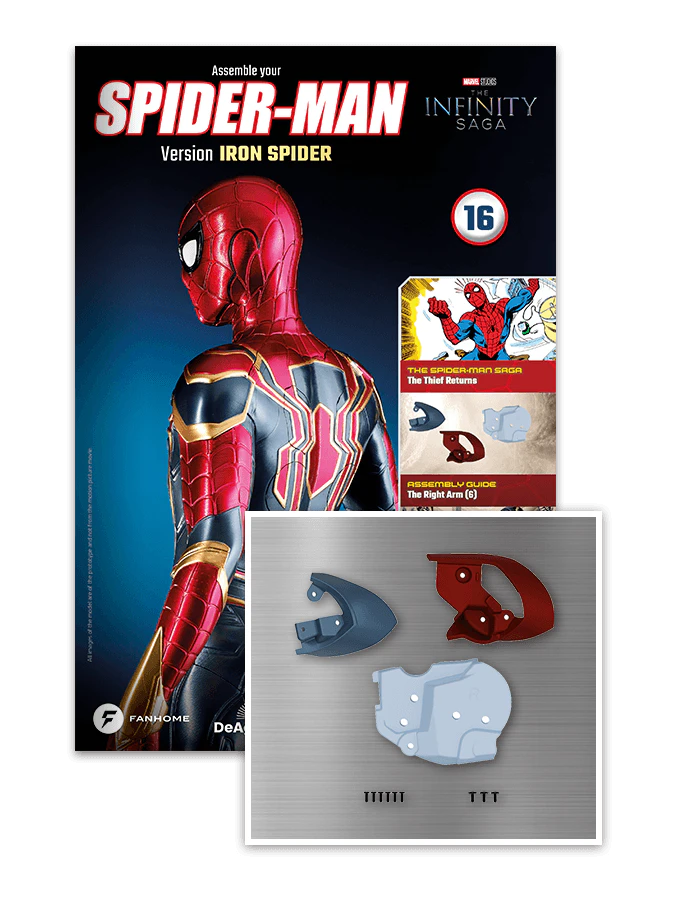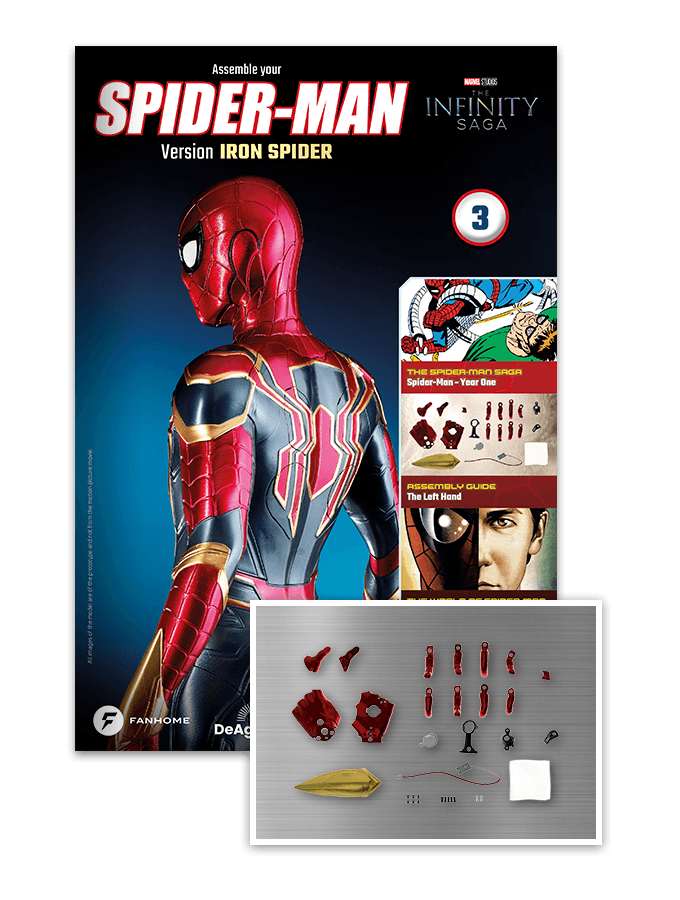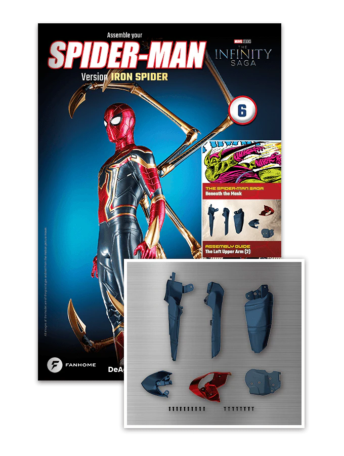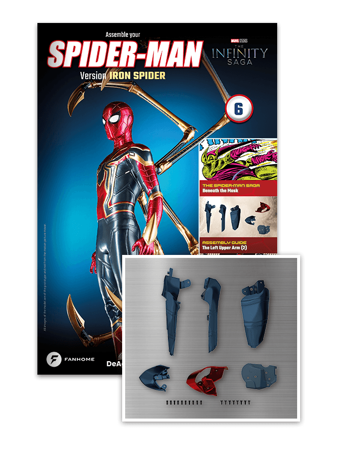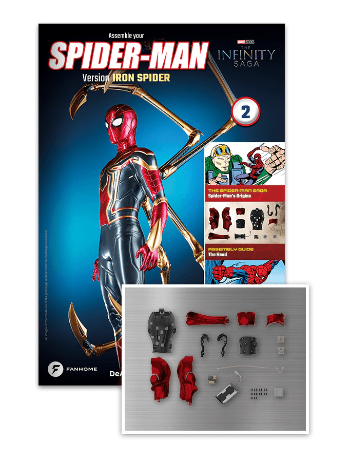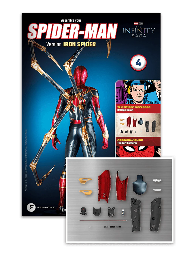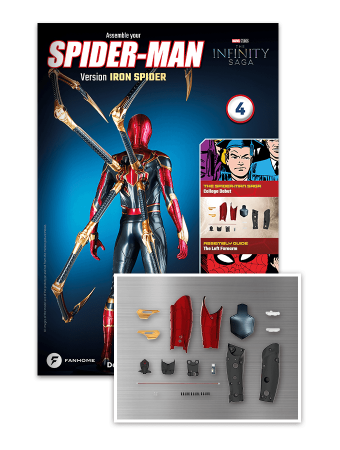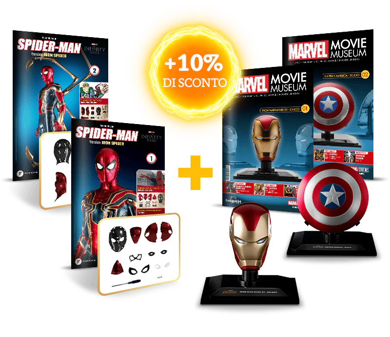 Con la prima uscita del pacchetto Marvel riceverai i primi tre oggetti dei personaggi Marvel + magazine e i primi due componenti del modello dell'Iron Spider + magazine. Nelle spedizioni successive, continuerai a ricevere entrambe le collezioni.